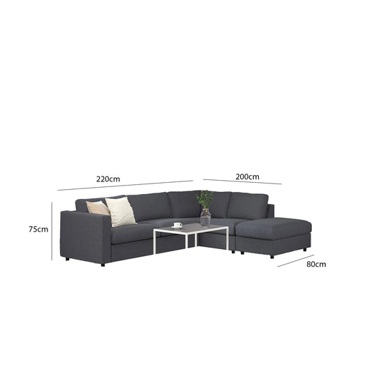 Corner sofa with beech wood pouf 220 x 200 cm - OUR44