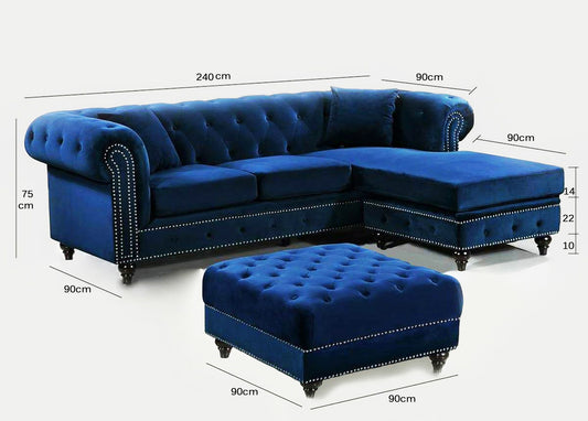 L-Shape Capitone sofa corner and Pouf - 180X240 - WS20