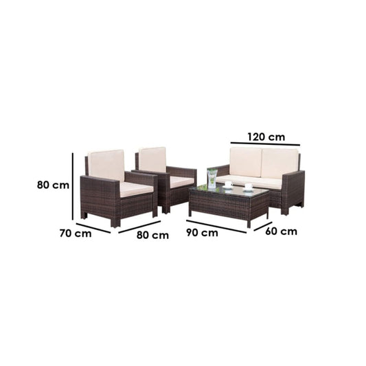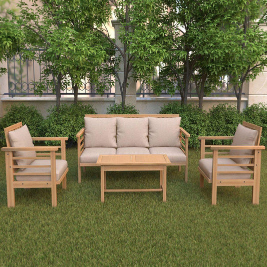 Natural beech wood outdoor set - sofa with two chairs and table-MNR19