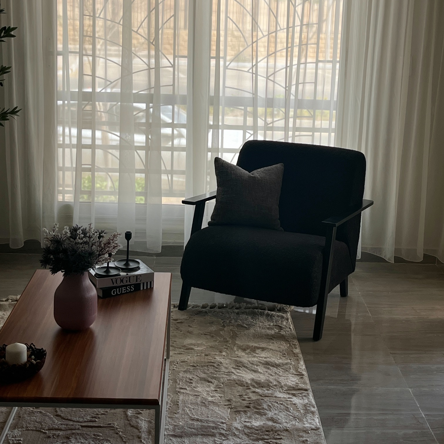 A comfortable armchair with an elegant design that adds a warm and beautiful touch to your room. Perfect for relaxing and enjoying quiet moments with simple elegance. A piece that combines comfort and beauty to complement your home decor.