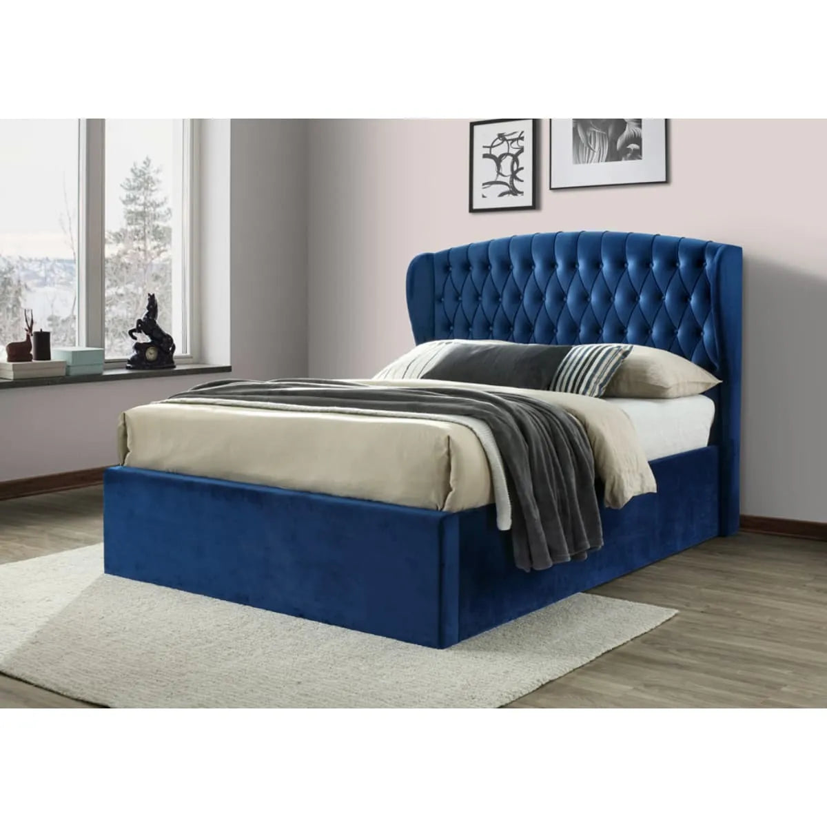 A high-quality natural wood bed, attractively designed with a high capton backrest. It will add elegance and sophistication to your bedroom. Buy it now.