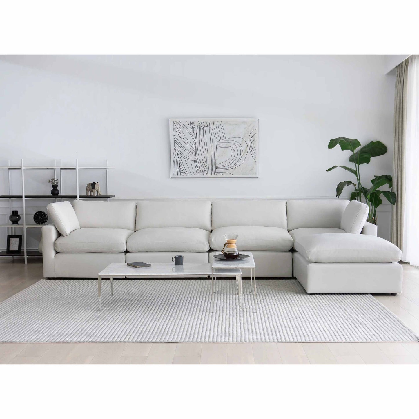 Get together with your family and enjoy watching TV when you buy a corner sofa with a large area and an elegant modern design, in addition to being made of beech wood and fabric of the finest materials to stay with you for many years.
