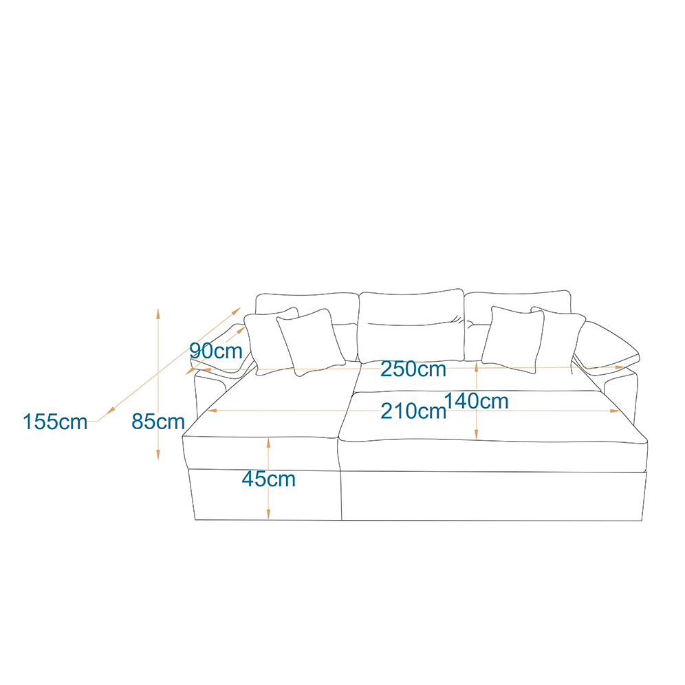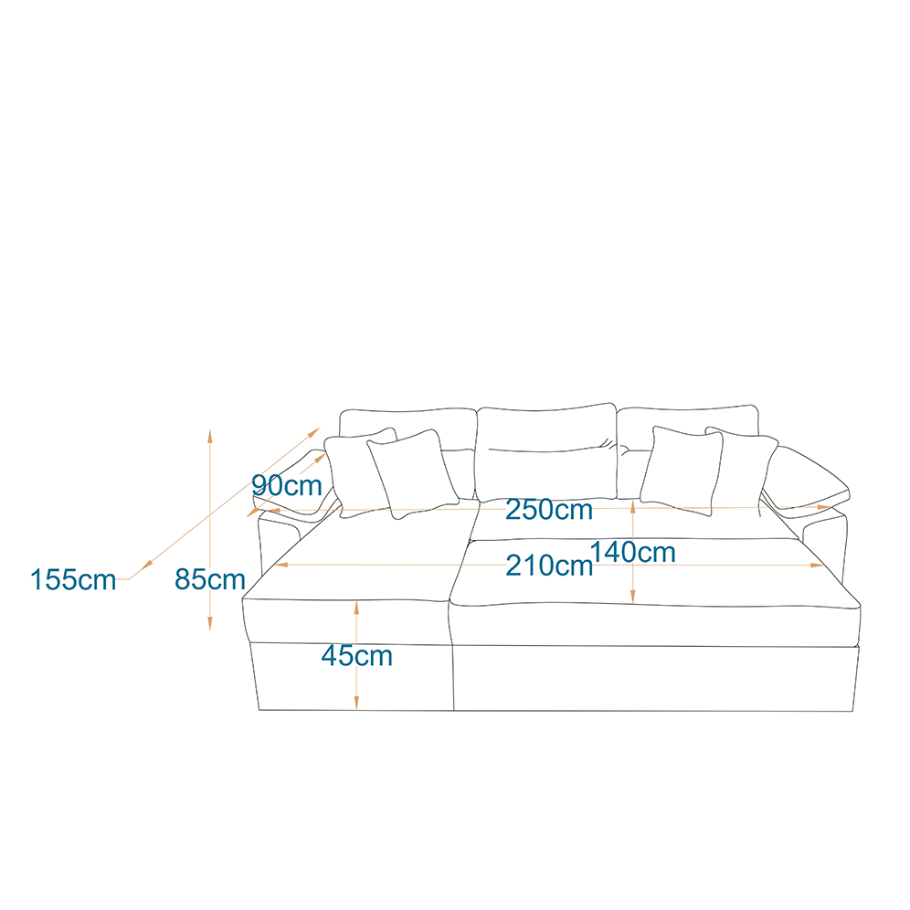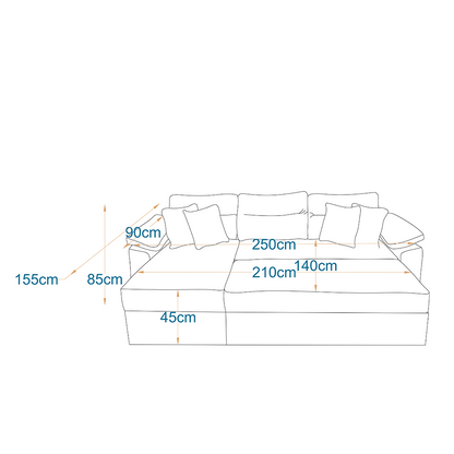 - Dimensions: Length 250cm - Width 155cm - Depth 90cm - Height 85cm