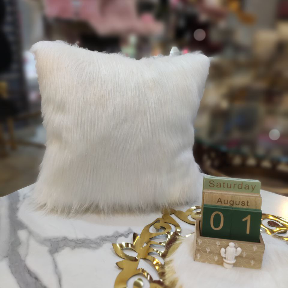- Materials: Imported Spanish fur - Dense soft fiber filling in a separate bag from the cushion - One-sided cushion, imported velvet back - Washable cover