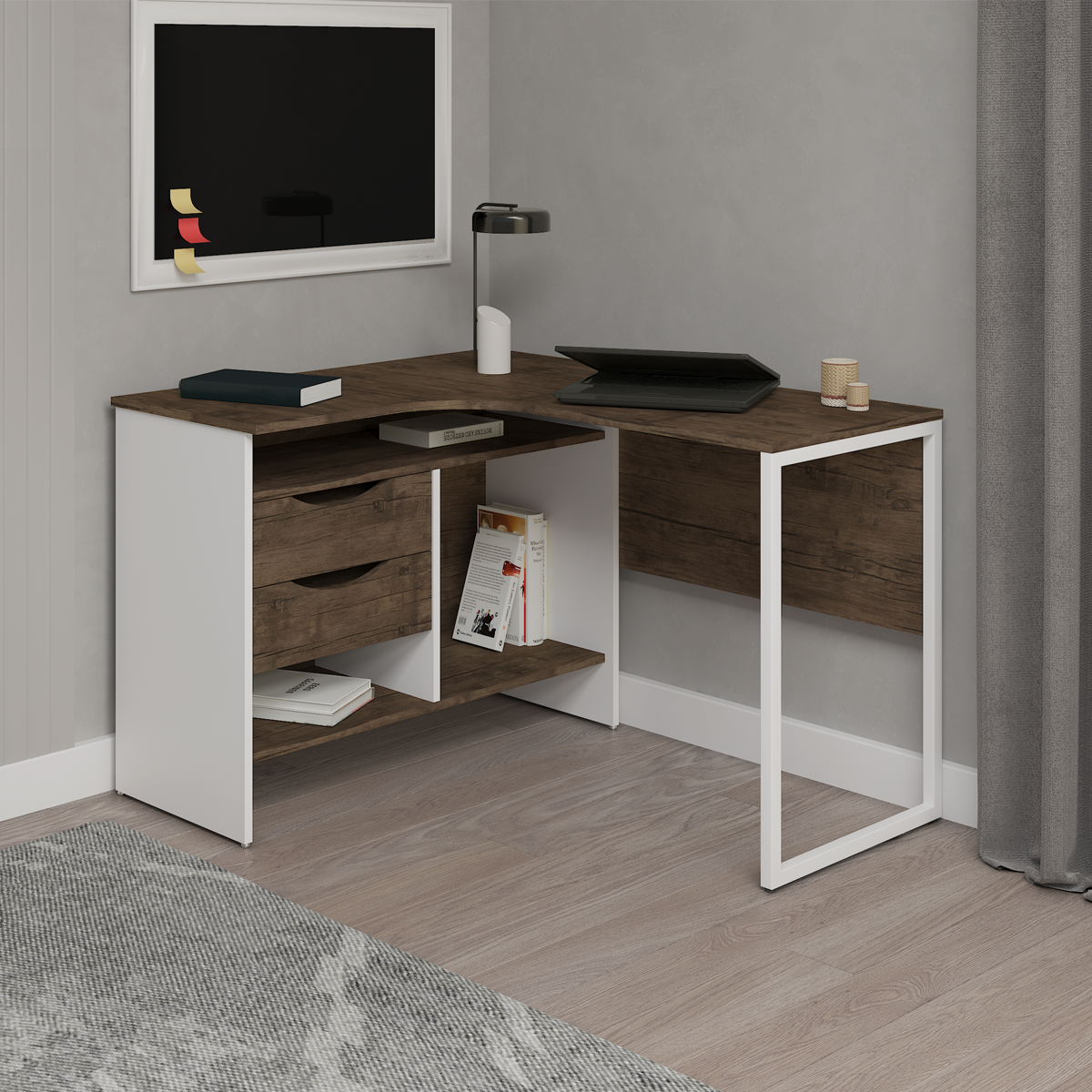 A functional desk with a stylish design that provides the perfect space for work or study. Featuring durable materials and a spacious surface that allows for efficient organization of tools, it makes a great addition to any room or office.