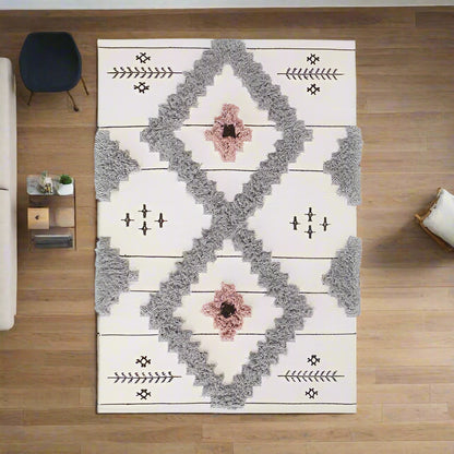 A hand-woven carpet with creative touches that reflect the beauty of craftsmanship and precision of details. Each thread is woven with precision to form a unique piece with a special character. Its elaborate details and harmonious colors add a sophisticated touch that reflects the beauty of authenticity and gives your space a warm and charming character