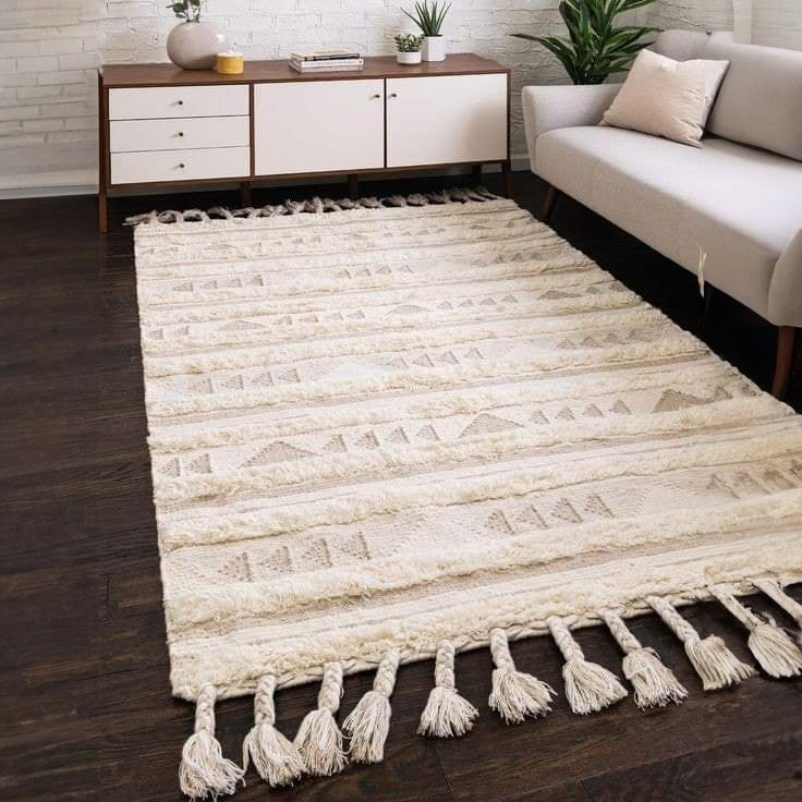 A hand-woven carpet with creative touches that reflect the beauty of craftsmanship and precision of details. Each thread is woven with precision to form a unique piece with a special character. Its elaborate details and harmonious colors add a sophisticated touch that reflects the beauty of authenticity and gives your space a warm and charming character