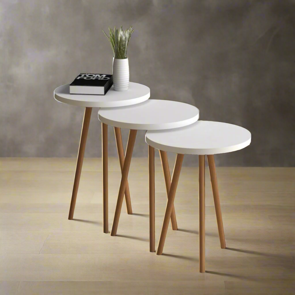 Get a two-piece side table with a distinctive design that adds a modern look to your home, made of natural beech wood and MDF wood to last you for many years in a new way.