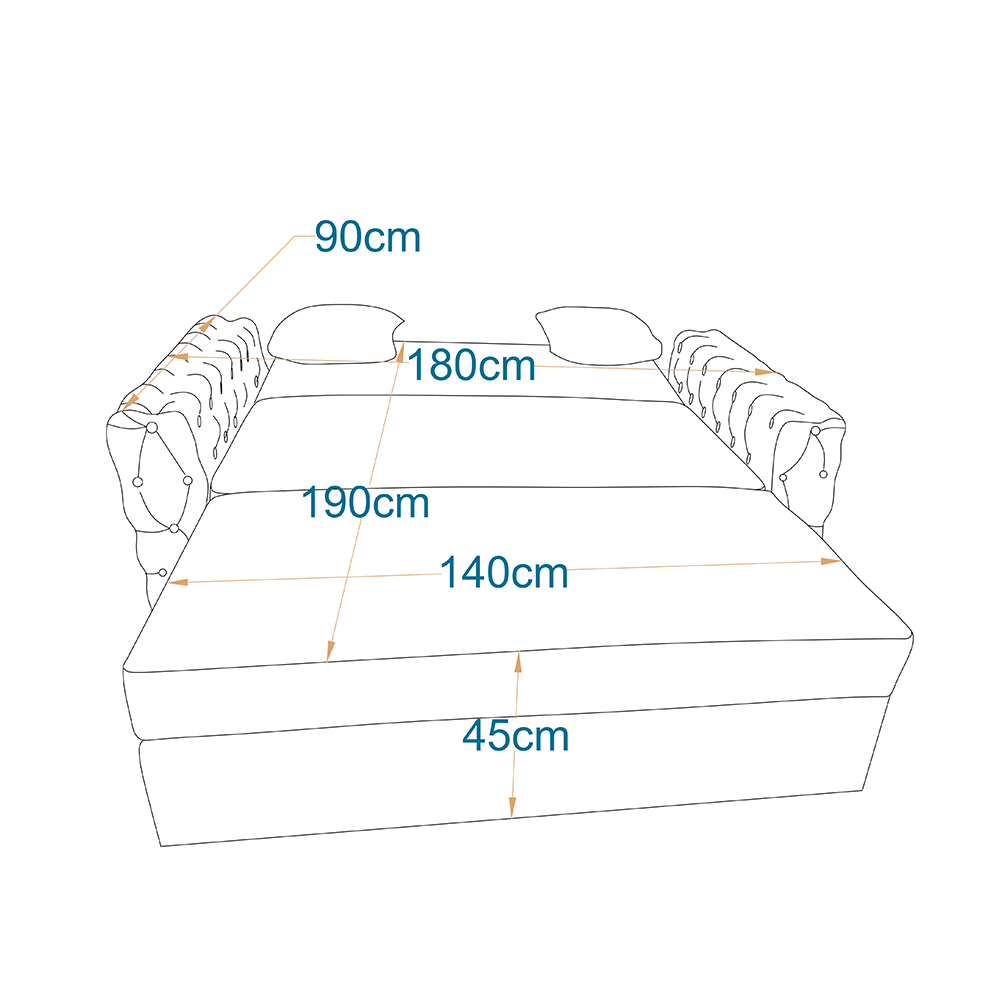 - Width when bed is open: 140cm - Length when bed is open: 190cm