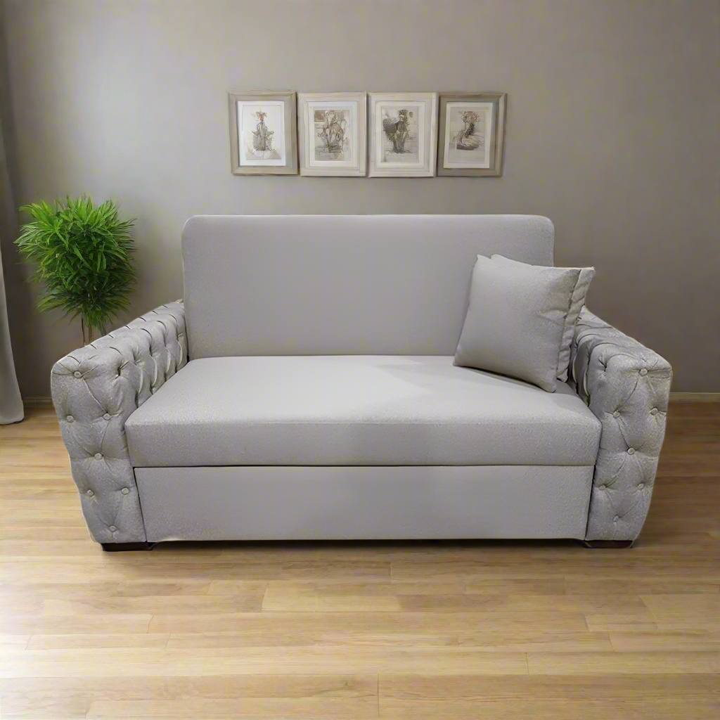 An elegant sofa with a modern design, equipped with a mechanism to easily convert it into a bed, ideal for providing comfort and making smart and elegant use of space.