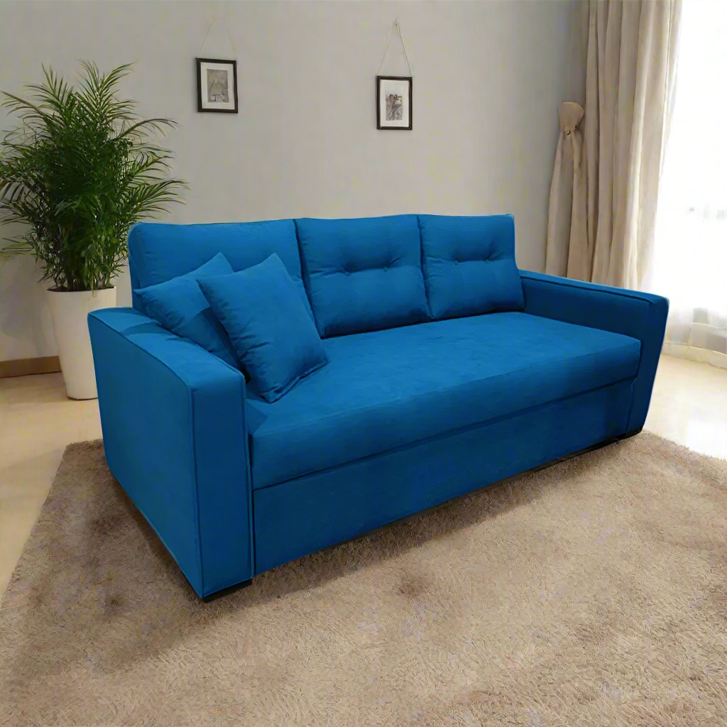 An elegant sofa with a modern design, equipped with a mechanism to easily convert it into a bed, ideal for providing comfort and making smart and elegant use of space.