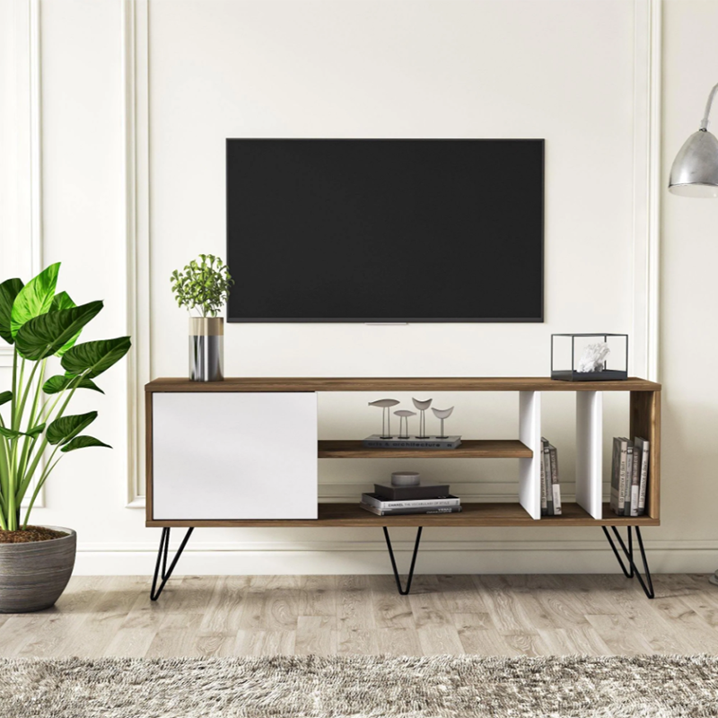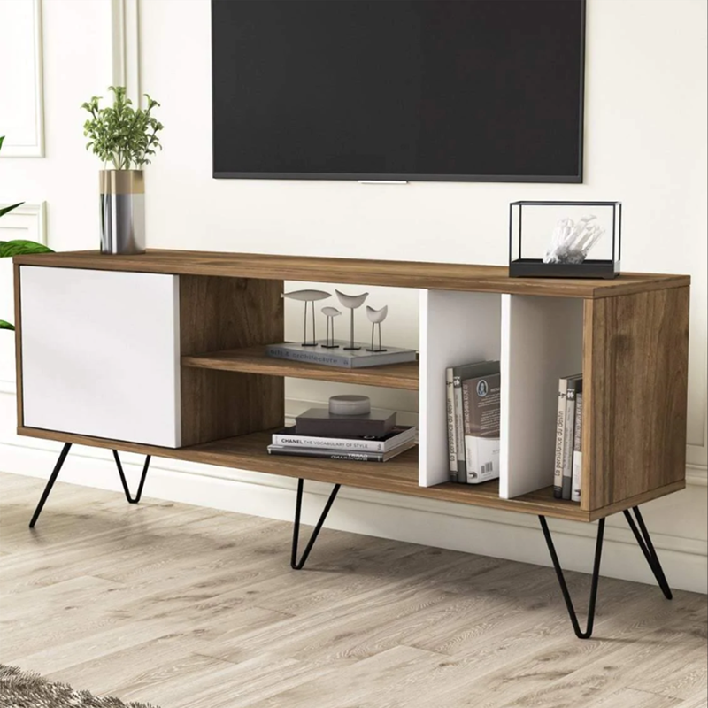 An elegant and modern TV table in its design. You can place it wherever you want and put some plants or some of your favorite decorative pieces on it to add a touch of sophistication and elegance to your home. It is made of crossbond wood panels made from pieces of European Union wood and is durable, ensuring that it will last with you for many years.