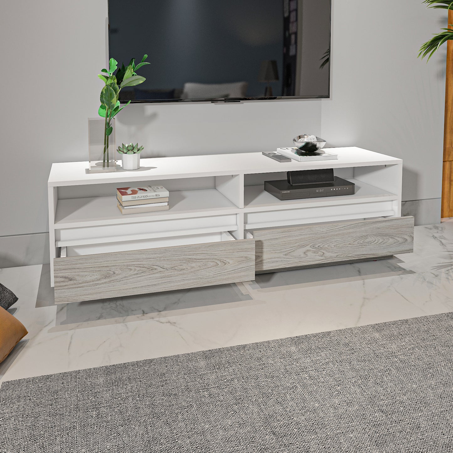A TV table with a modern design that will change the decor of your home, made of high-quality wood. Get it to keep the area around your TV tidy