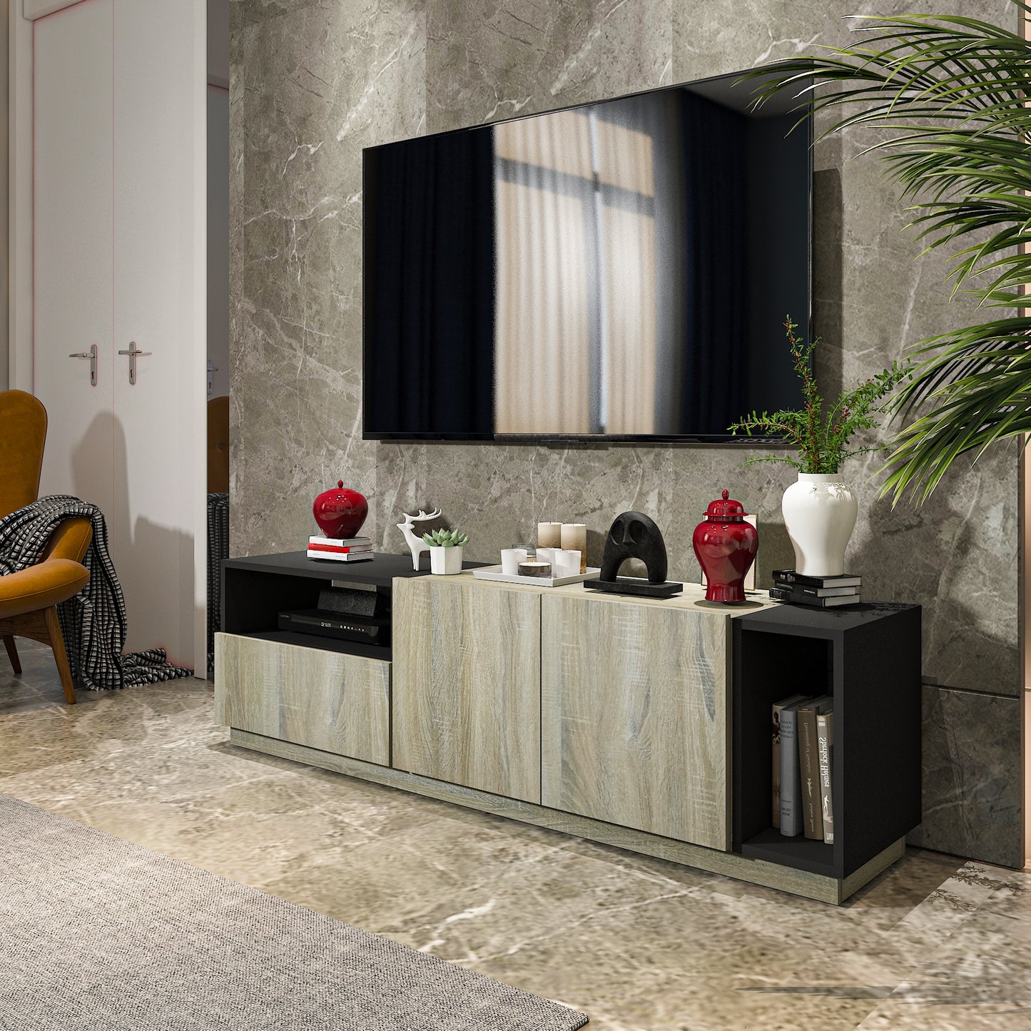 A TV table with a modern design that will change your home decor. It is made of high-quality wood and soft close hinges for more practicality. Get it to keep the area around your TV organized