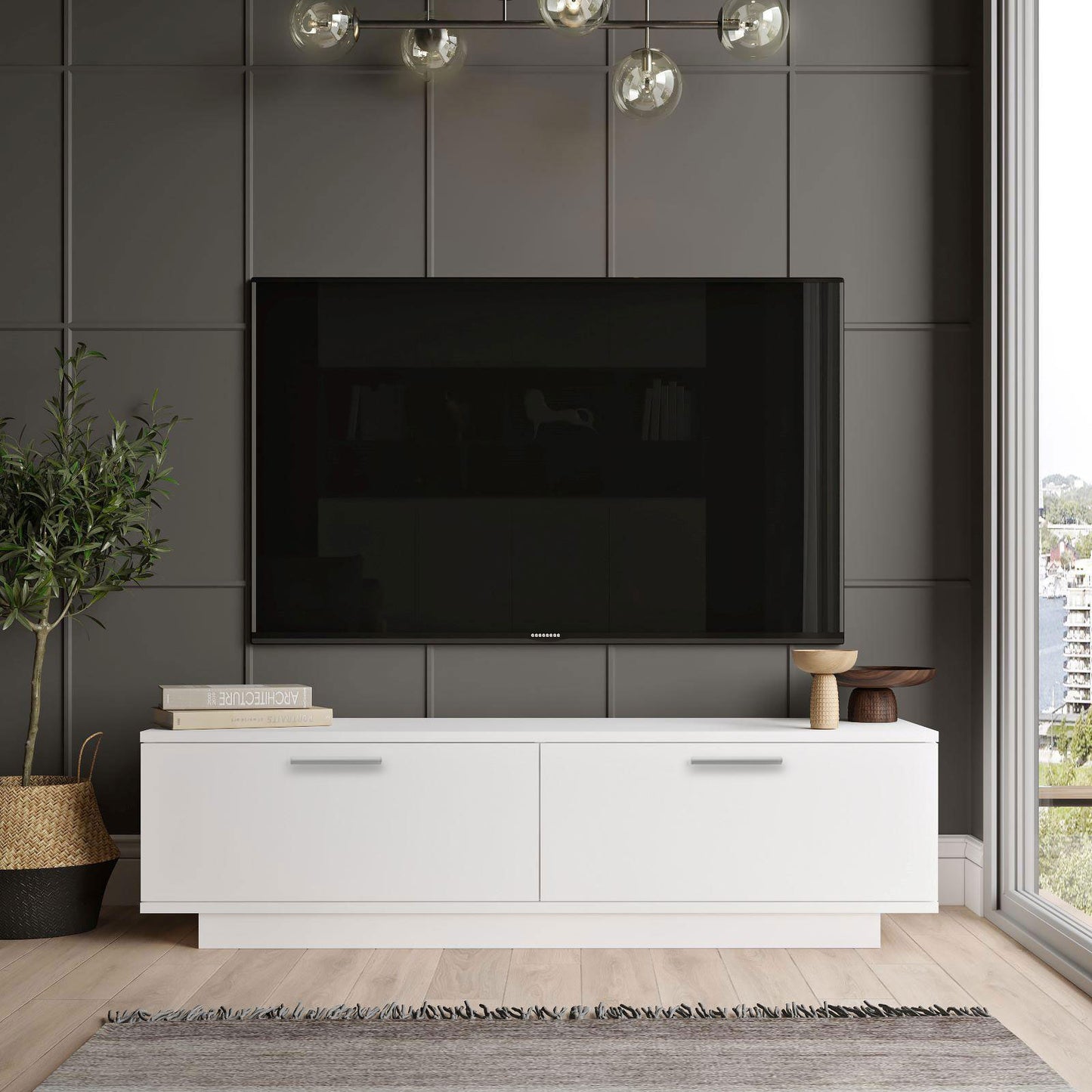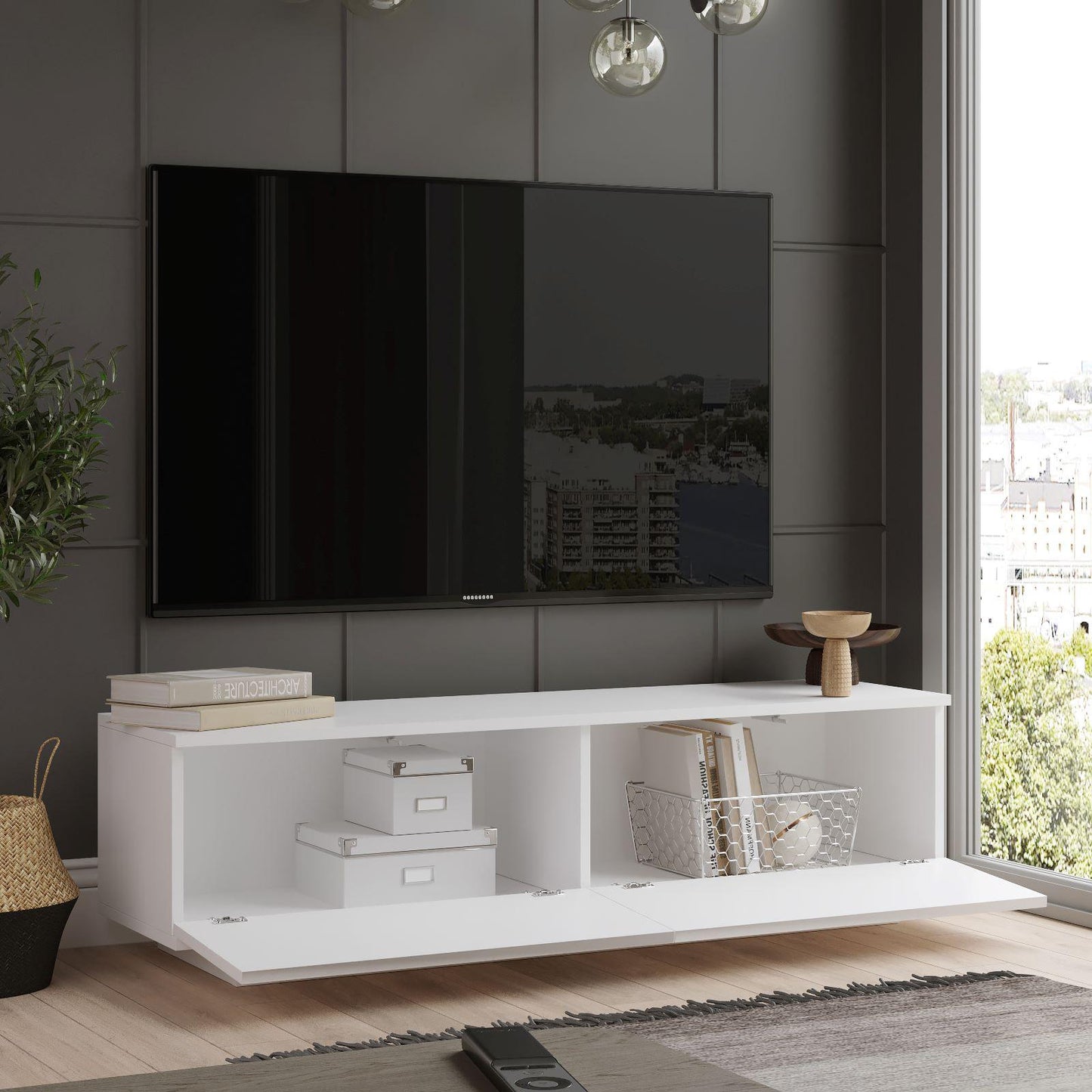An elegant TV table with a modern design that combines practicality and beauty, equipped with ideal storage spaces for organizing devices and accessories, to add a touch of elegance and perfect organization to the living room.