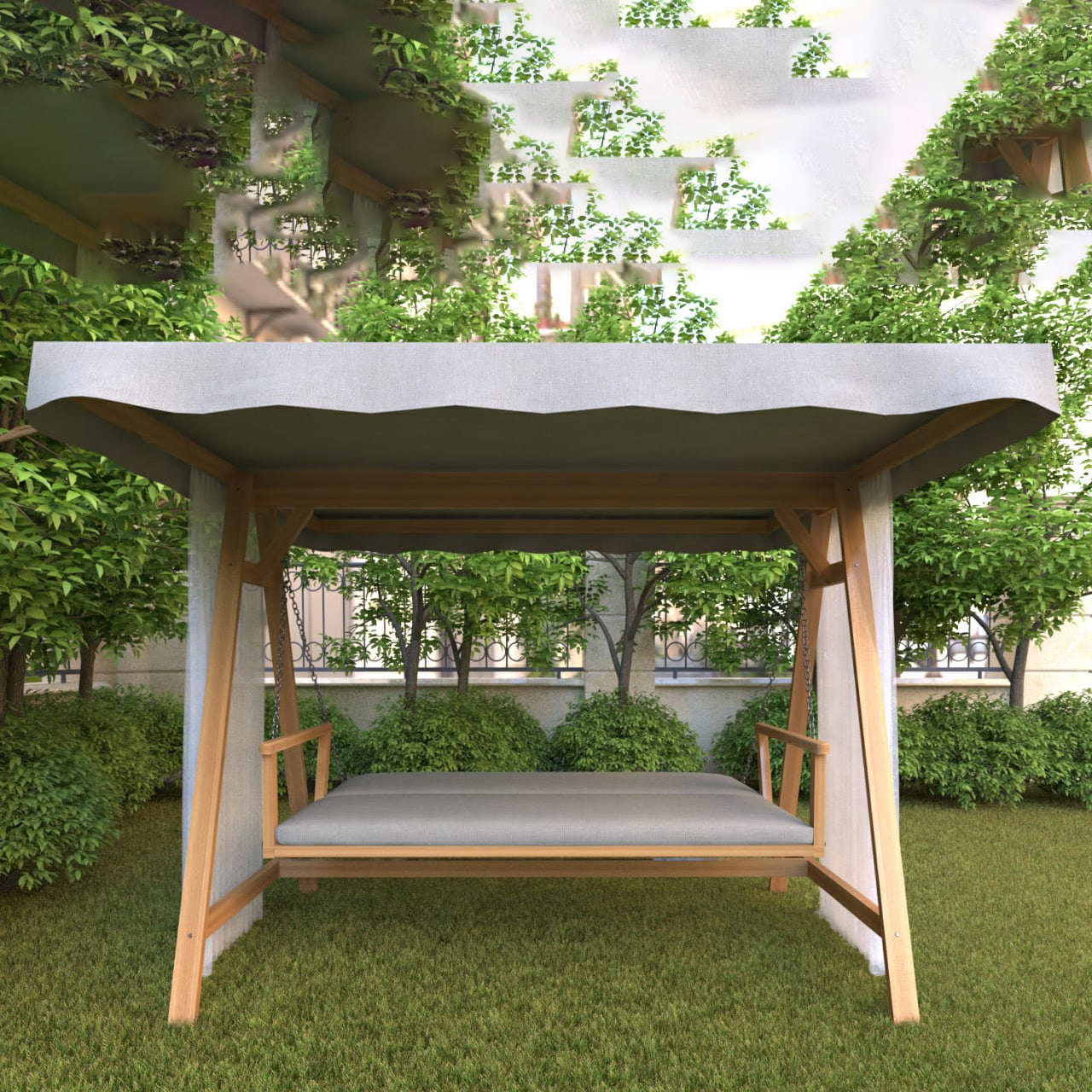 برجولة حديقة مع ارجوحة - خشب زان طبيعي-MNR25