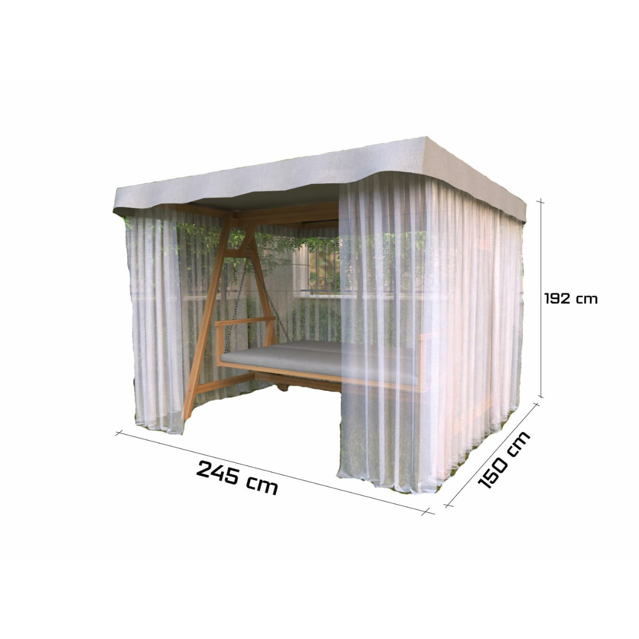 جدد حديقتك الخاصة لتستمتع دائمًا بالمناخ الرائع في جميع فصول السنة، اقتن برجولة مكونة من ارجوحة يمكنك تحويلها إلى سرير ومرفق بها ستارة شيفون بتصميم أنيق كما انها مصنوعة من قماش الدك المقاوم للشمس والمياه.