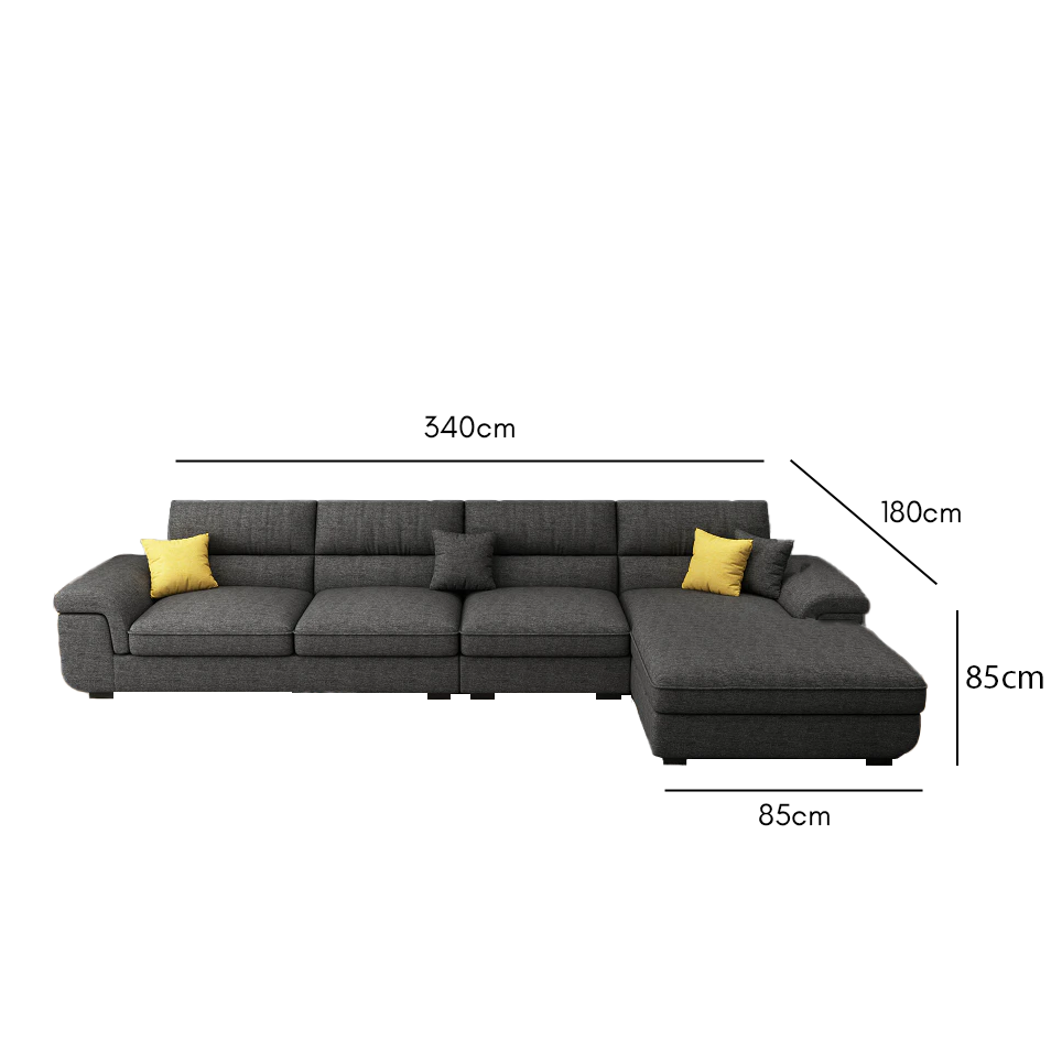 - المقاس: الطول 340سم - العرض 180سم - العمق 85سم - الإرتفاع 85سم