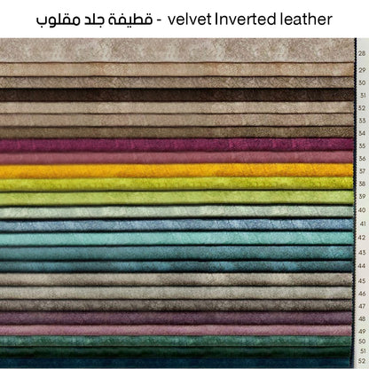 - الخامات: خشب زان طبيعي - القماش متاح قطيفة أو جلد مقلوب