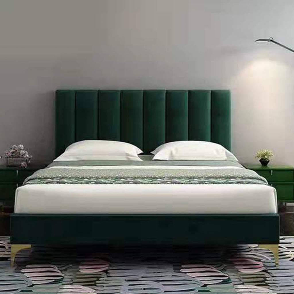 - الخامات: خشب كونتر - شاسيه خشب زان - قماش قطيفة