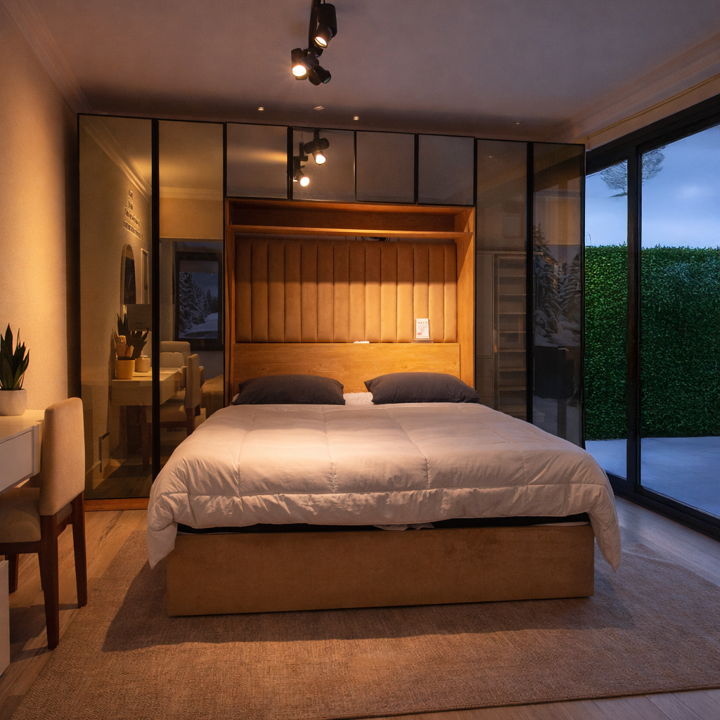 سرير مريح مع دريسنج عملي في تنسيق واحد متكامل يمنح غرفة نومك حضورًا أنيقًا وتنظيمًا واضحًا. تصميم مدروس يساعدك على الاسترخاء والحفاظ على ترتيب المساحة بسهولة.