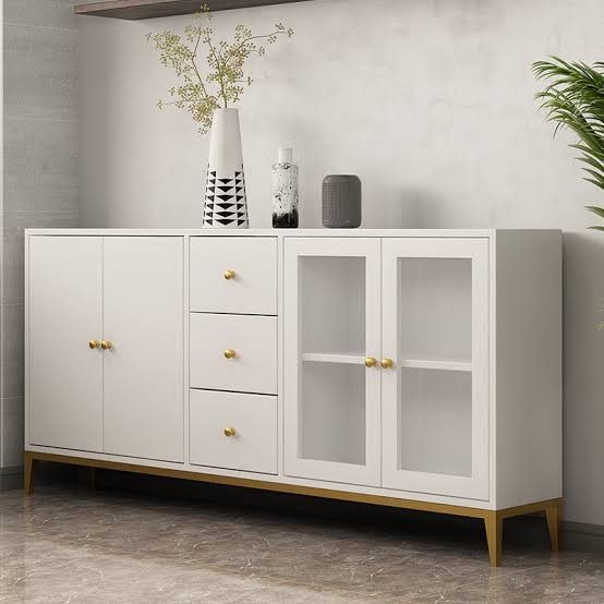 بوفيه بتصميم راقٍ يجمع بين الجمال والعملية، مثالي لتنظيم أدوات السفرة أو عرض القطع المميزة. قطعة تضيف لمسة فخامة لأي غرفة وتكمل ديكورك بذوق عالي.