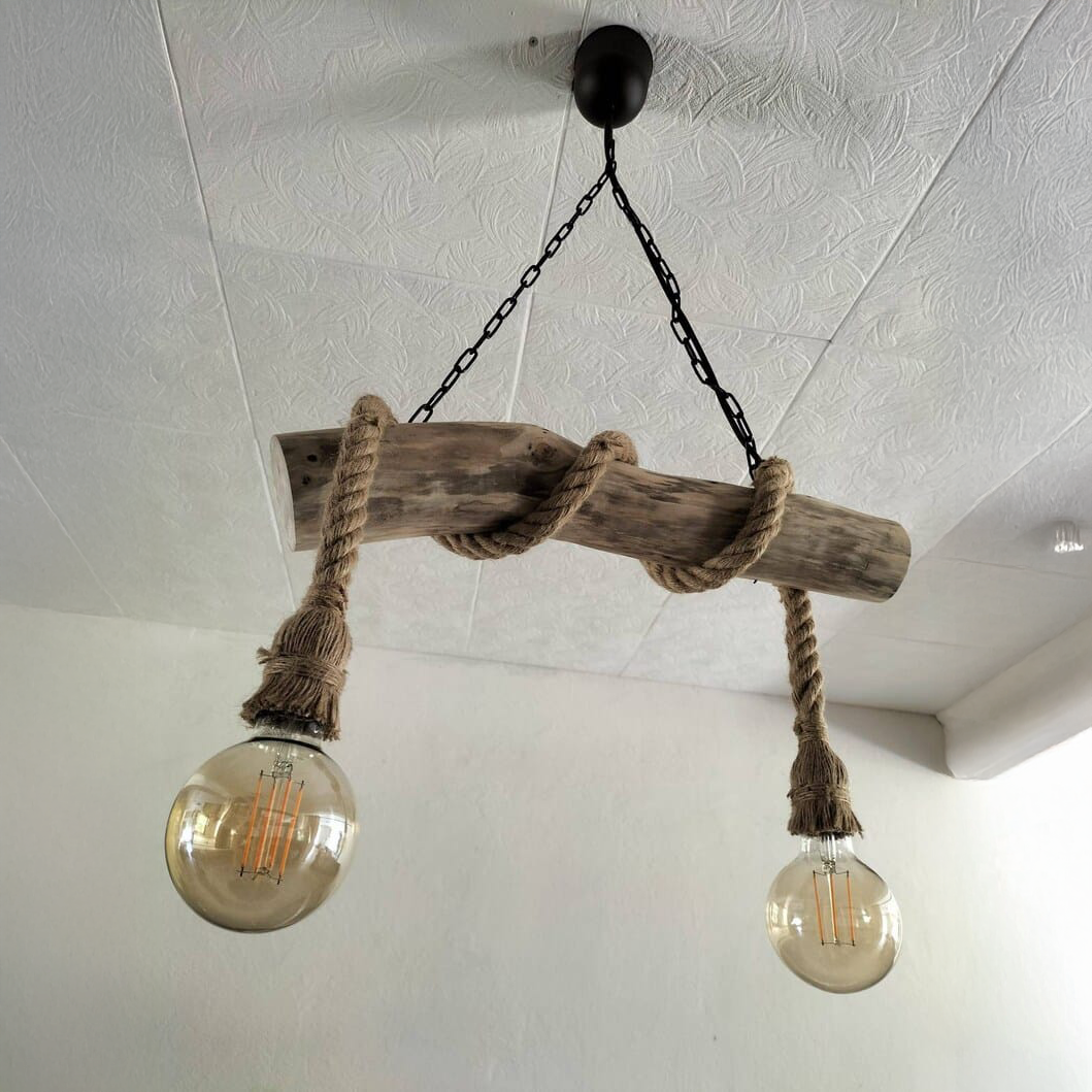 - الخامات: خشب أشجار طبيعي معالج - حبال ديكور