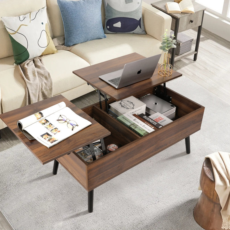 ترابيزة قهوة أنيقة توفر سطحًا مناسبًا لوضع المشروبات والكتب أو أي أغراض يومية، ومزودة بميكانيزم يفتح ليكشف عن مساحة تخزين داخلية للأغراض الصغيرة. خامتها المتينة ولونها الهادئ تجعلها قطعة عملية وأنيقة تكمل ديكور غرفة المعيشة.