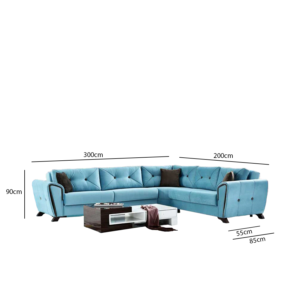 - المقاسات: الطول 300سم - العرض 200سم - العمق(القاعدة) 55سم