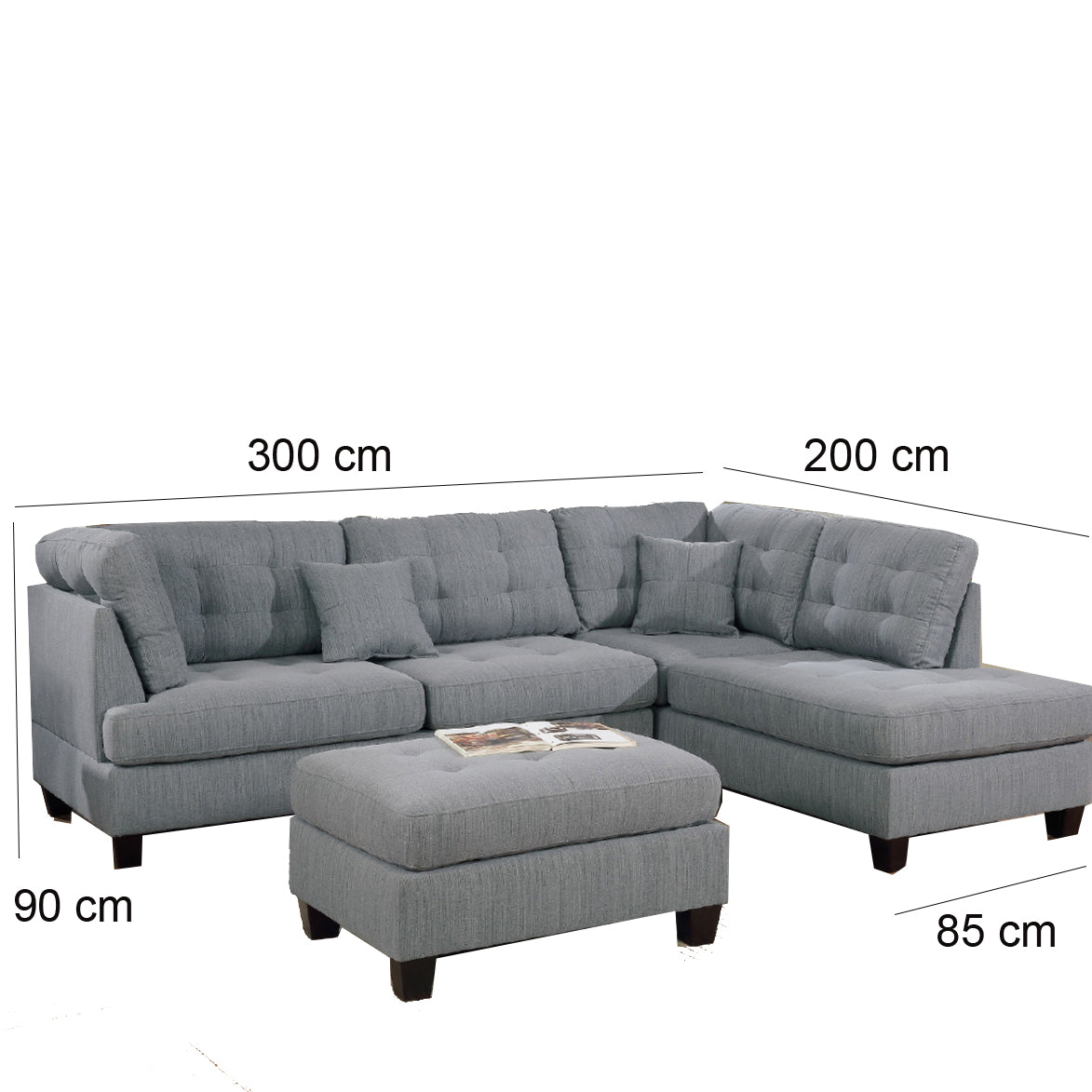 - المقاسات: الطول 300سم - العرض 200سم - العمق(القاعدة) 55سم
