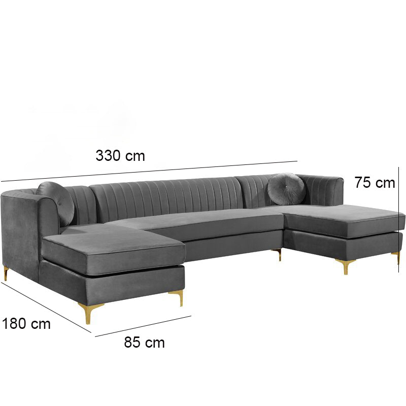 - المقاس: الطول 330سم - العرض 180سم - العمق 85سم - الأرتفاع 75سم