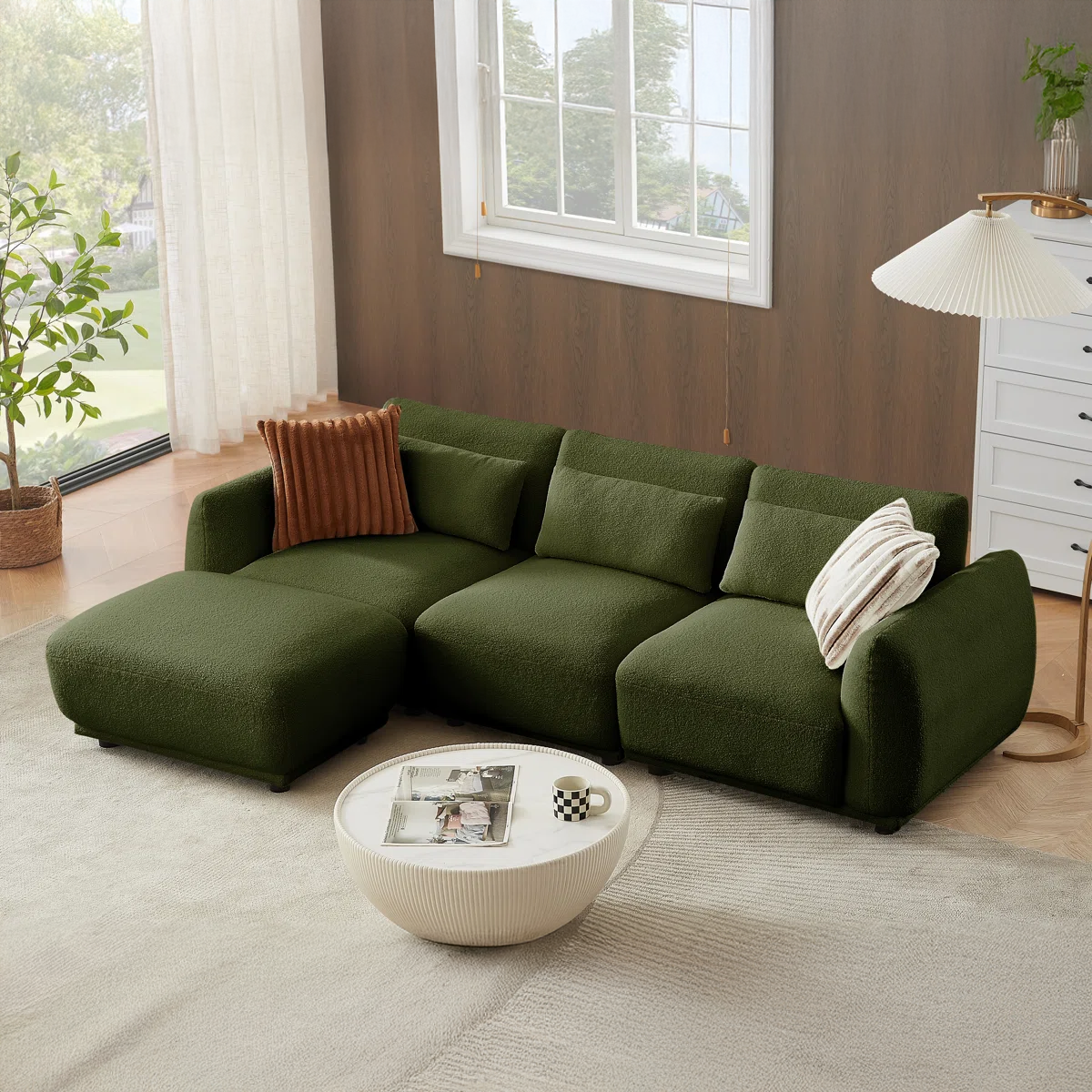 ركنة عصرية بتصميم أنيق تضيف لمسة من الفخامة والدفء إلى غرفة المعيشة. تجمع بين الراحة والشكل الجذاب لتجعل جلستك أكثر متعة، وتمنح المكان مظهراً متناسقًا يكتمل معه جمال الديكور.