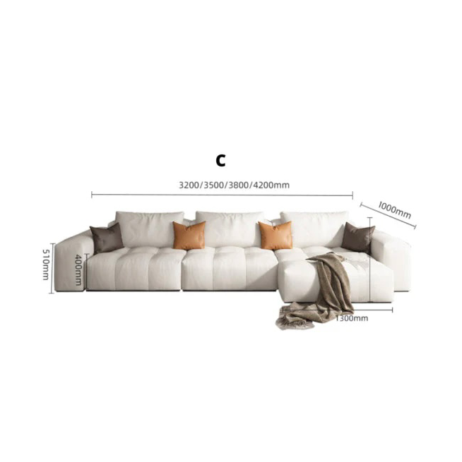 مقاس الكنبة: العرض 420سم - العمق 100سم - الارتفاع 60سم