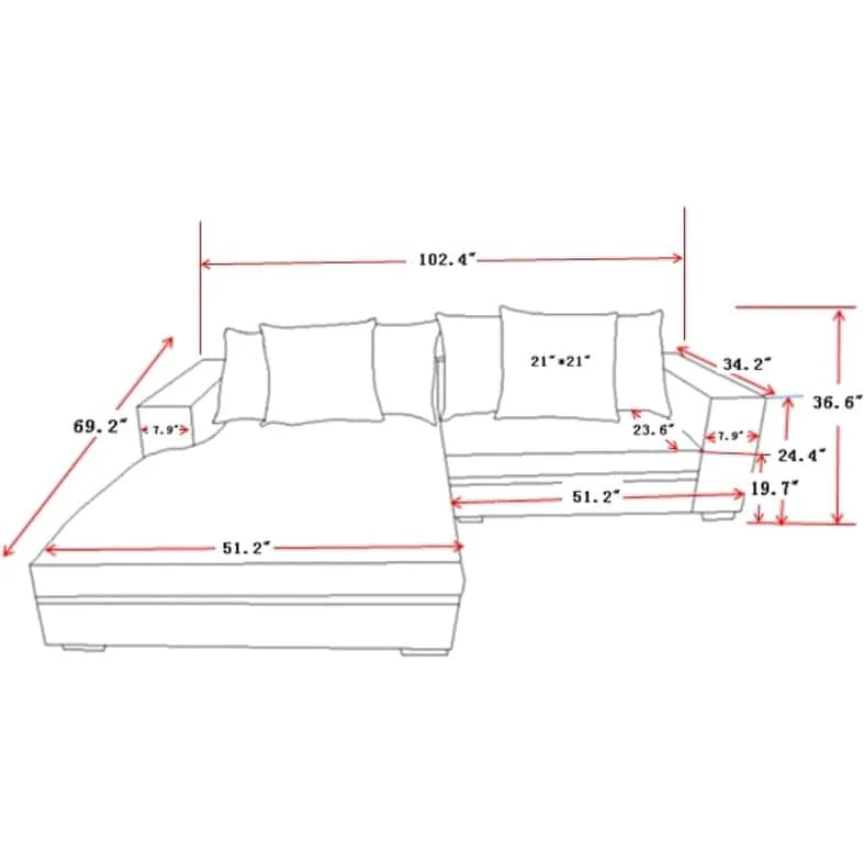 - مقاس الكنبة: العرض 260سم - العمق 85سم - الارتفاع 90سم