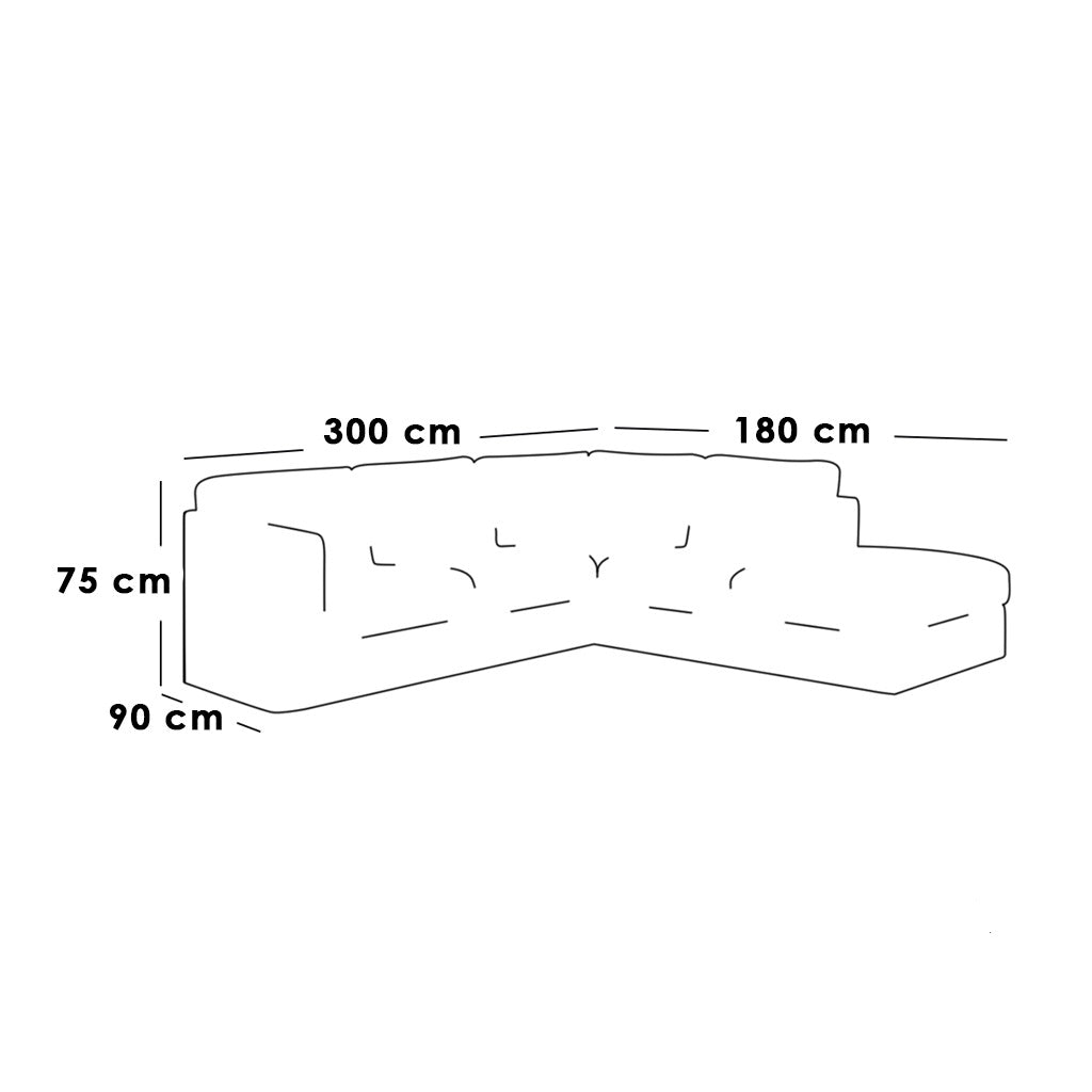المقاسات: الطول 300سم - العرض 180سم - العمق 90سم- الإرتفاع 75سم