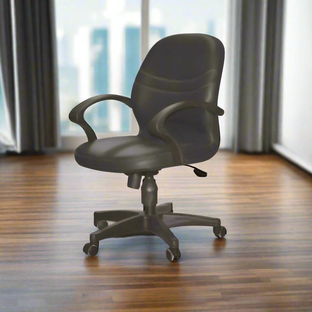 كرسي مكتب متحرك بتصميم أنيق يوفر لك الراحة أثناء الجلوس عليه لتستطيع التركيز على عملك وتقديم أفضل إنتاجية، مزود بعجل لسهولة تحريكه من مكان لآخر، مميز بخامة عالية الجودة تضمن تحمله لسنوات من الإستخدام المستمر.
