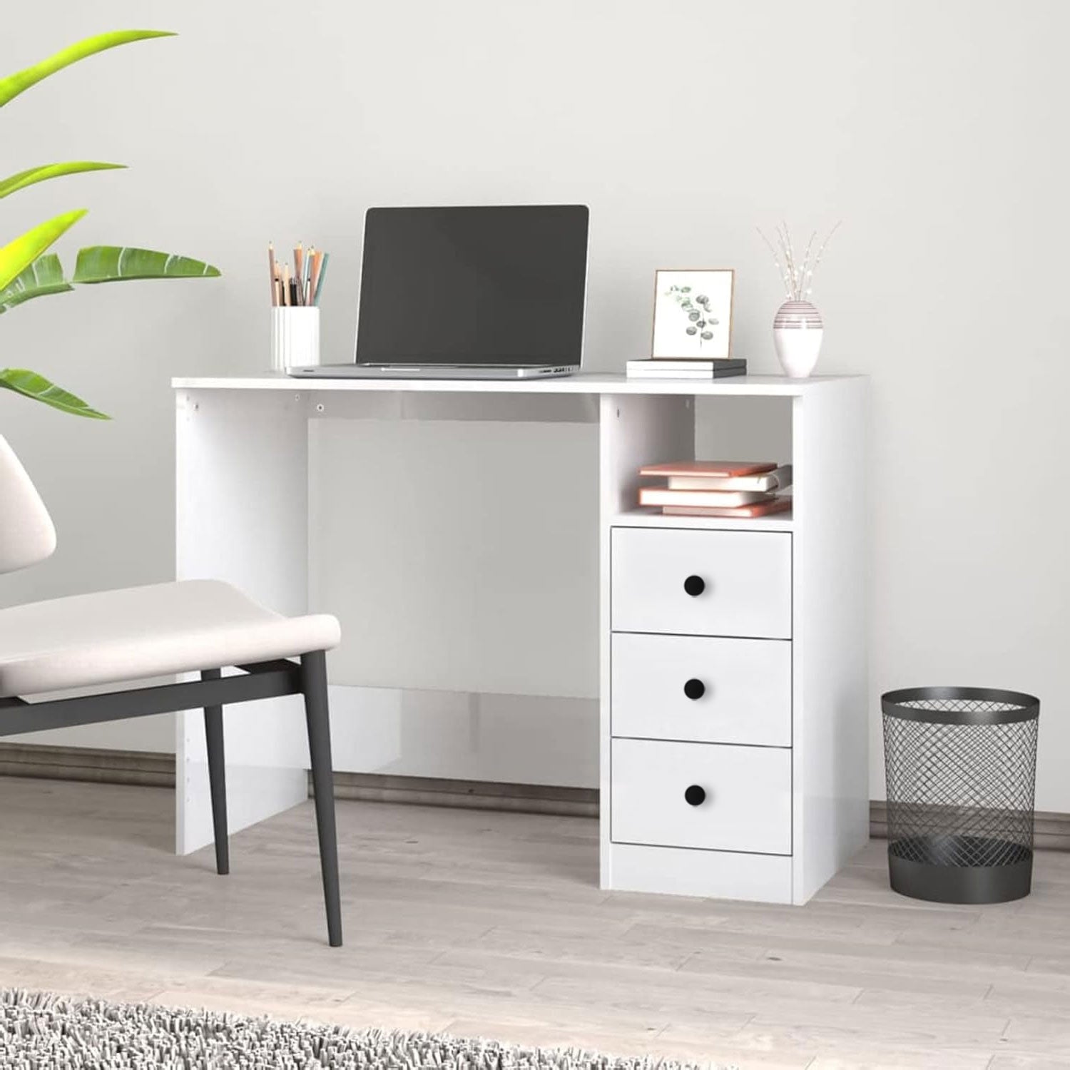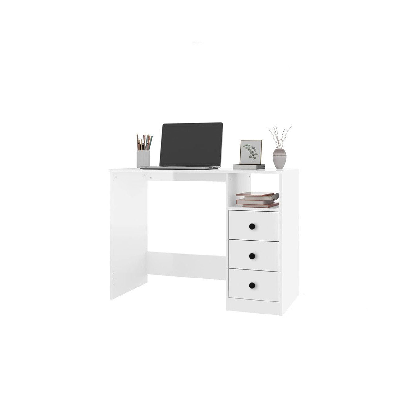 مكتب أنيق ومرتب، مثالي للعمل أو الدراسة، يجمع بين التصميم البسيط والوظائف العملية ليضيف لمسة من التنظيم إلى يومك.
