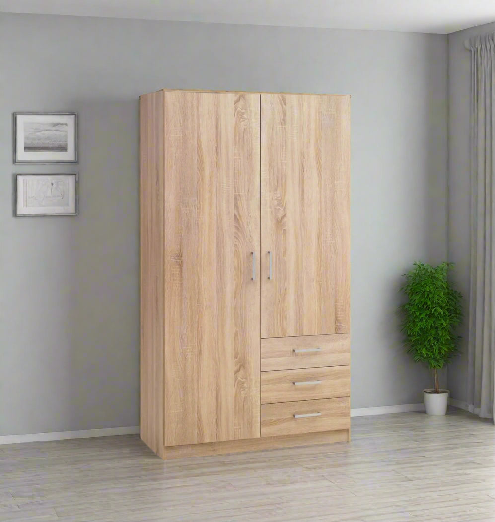 تستطيع ان ترتب ملابسك واغراضك في دولاب 2 درفة و3 درج به 5 ارفف داخليه وشماعة ملابس من خشب ام دي اف عالي الجودة ذو لونين لتختار ما يناسبك