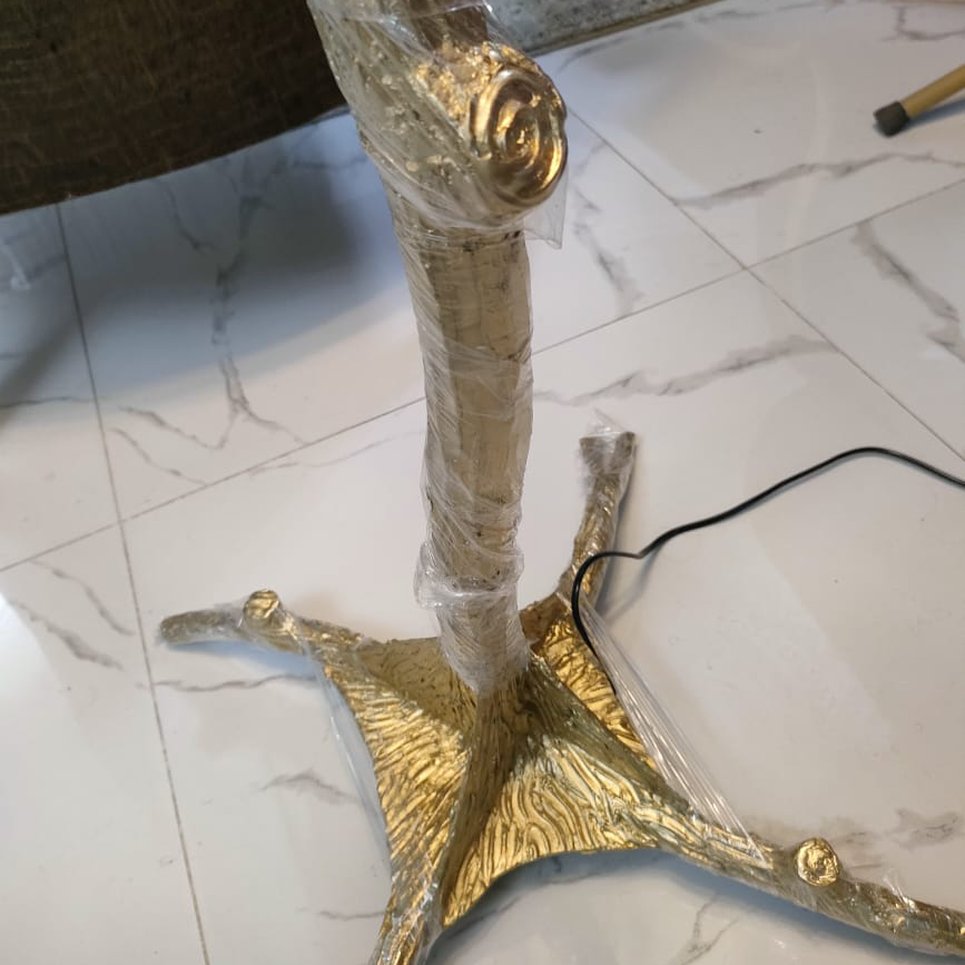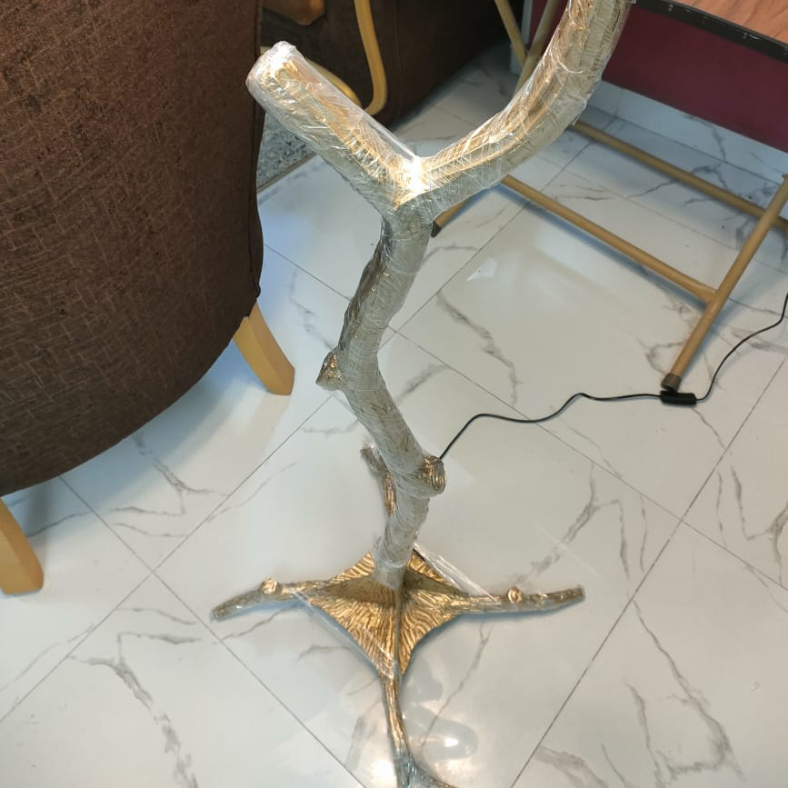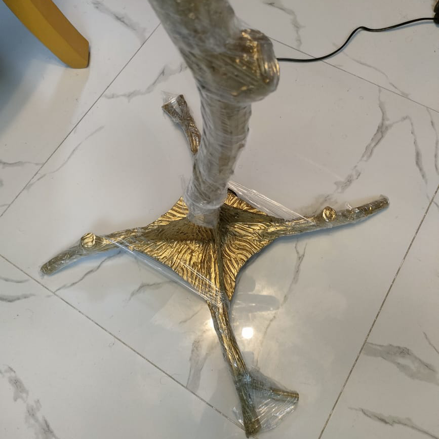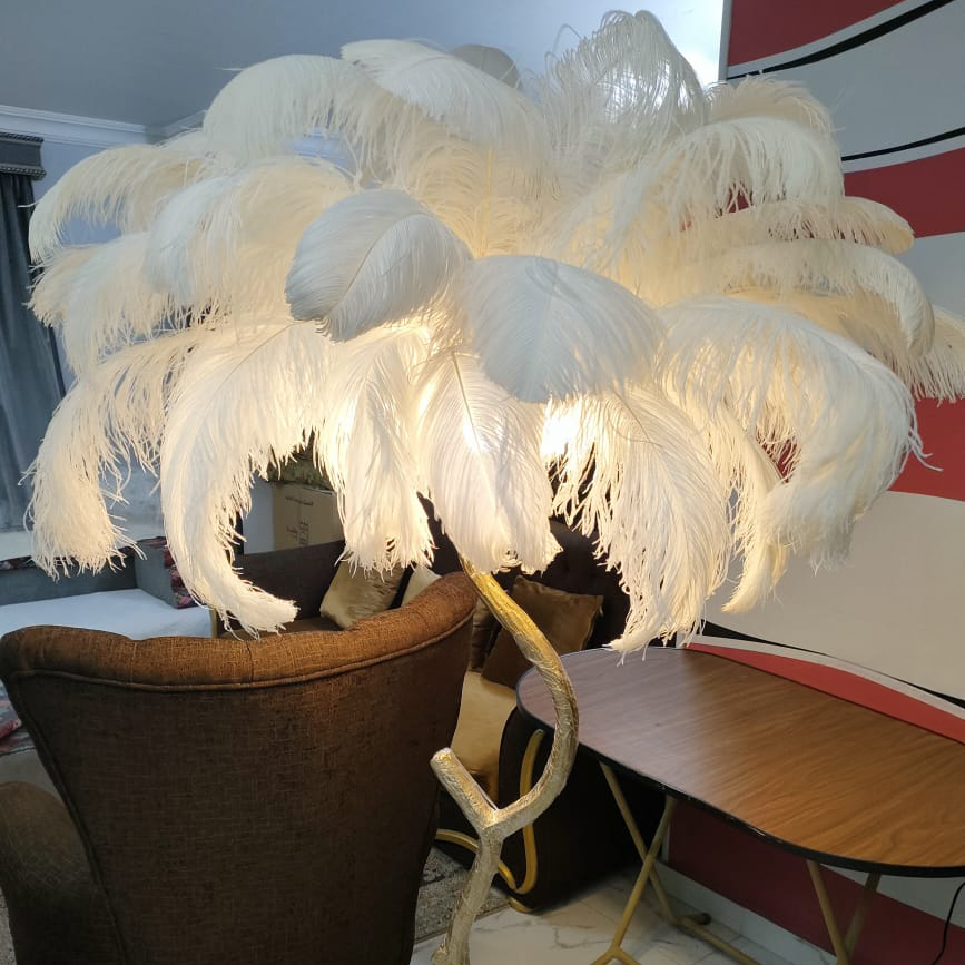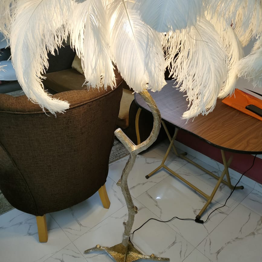 اضف لمسة من الفخامة والرقي إلى منزلك مع أباجورة الريش الأرضية. تصميمها المستوحى من الطبيعة مع قاعدة ذهبية أنيقة تمنح المكان حضورًا ملكيًا، بينما تضيف الريشات البيضاء الفاخرة إضاءة دافئة ومبهجة لتصنع أجواءً حالمة في غرفة المعيشة أو غرفة النوم.