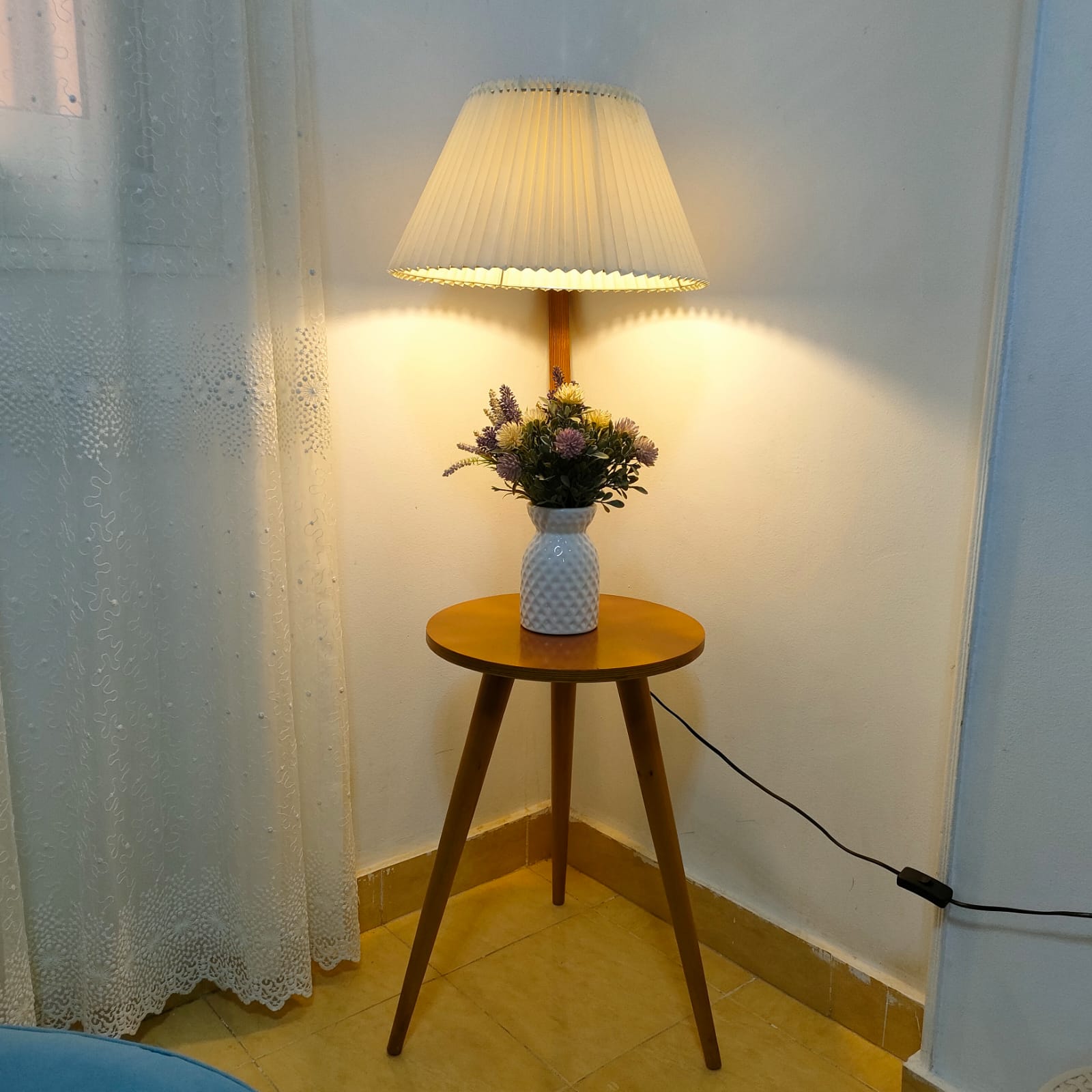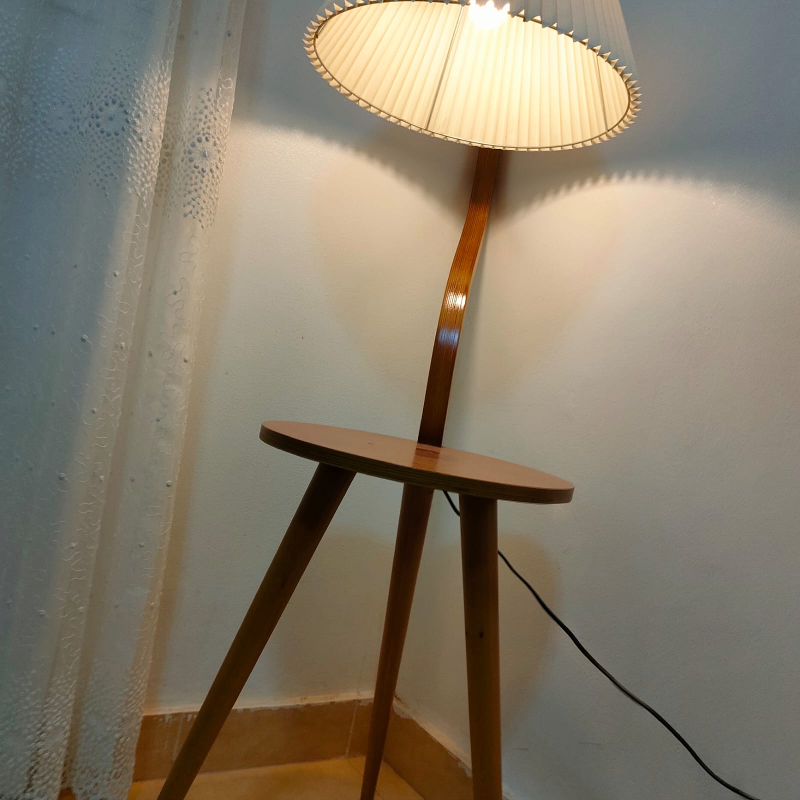 اضف لمسة دفء وراحة إلى منزلك مع أباجورة أرضية فريدة تجمع بين الإضاءة الأنيقة و الوظيفة العملية. تصميمها الأنيق يضم ترابيزة جانبية عملية لوضع قطع الديكور وإكمال أناقة منزلك، مناسبة لغرف النوم، غرف المعيشة أو حتى مكاتب الاستقبال.