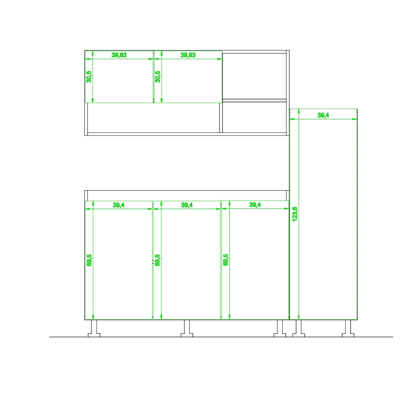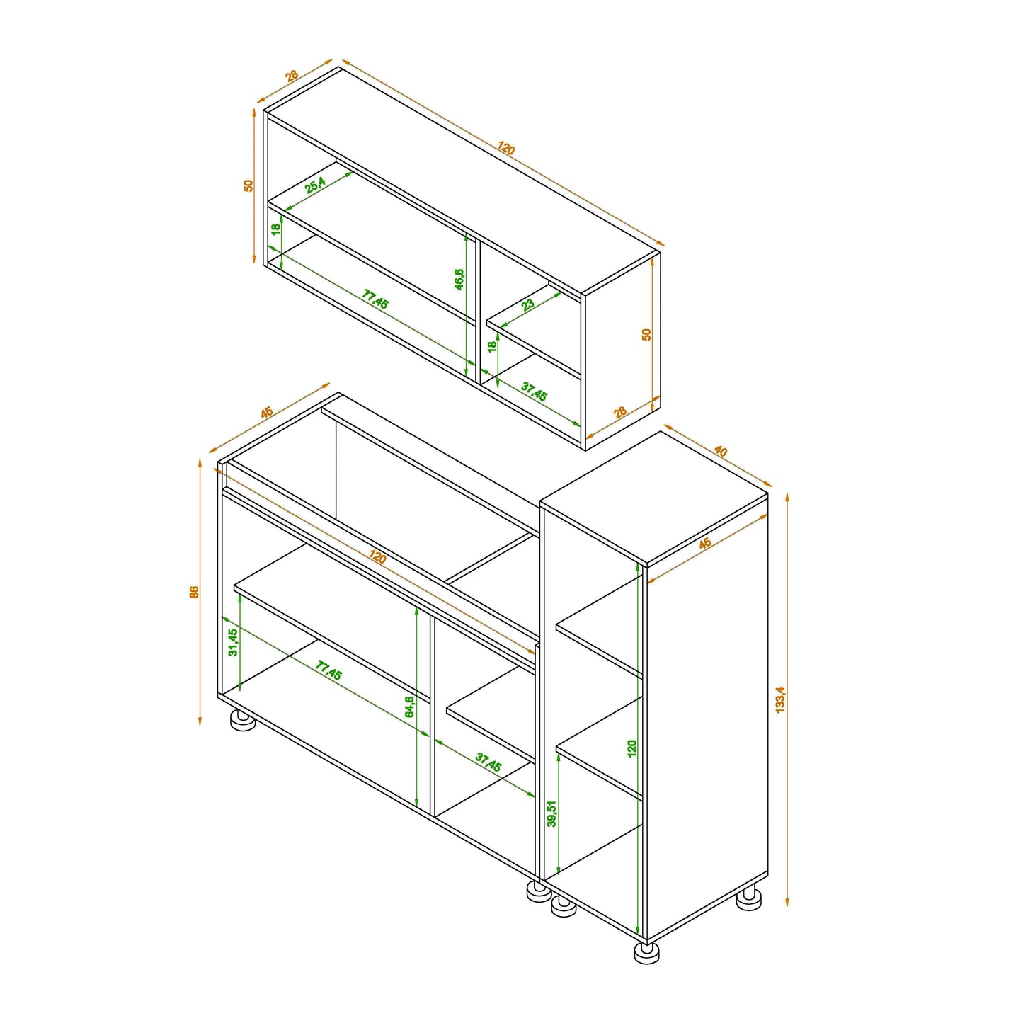 - مقاس الوحدة العلوية: العرض 120سم- العمق 30سم- الإرتفاع 50سم