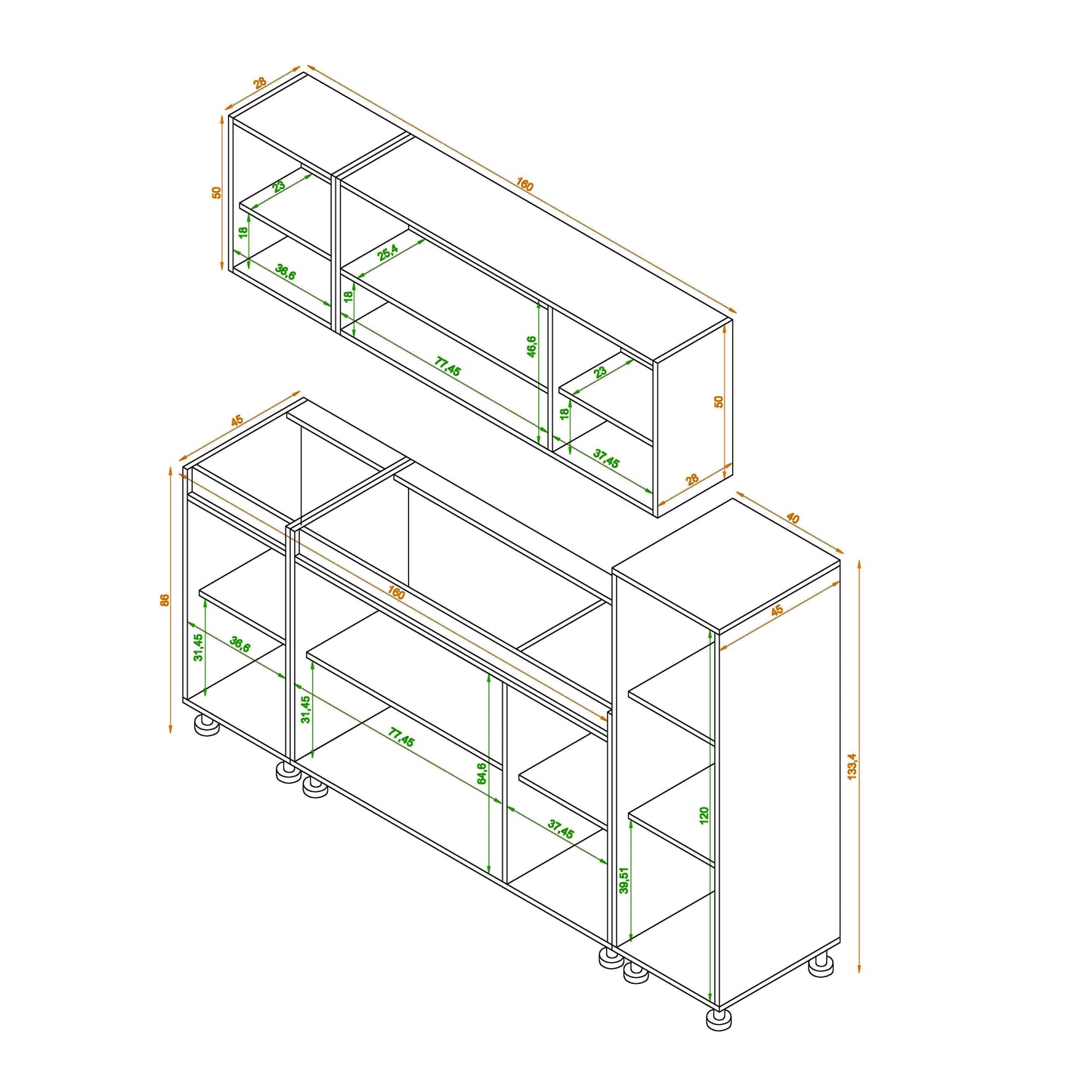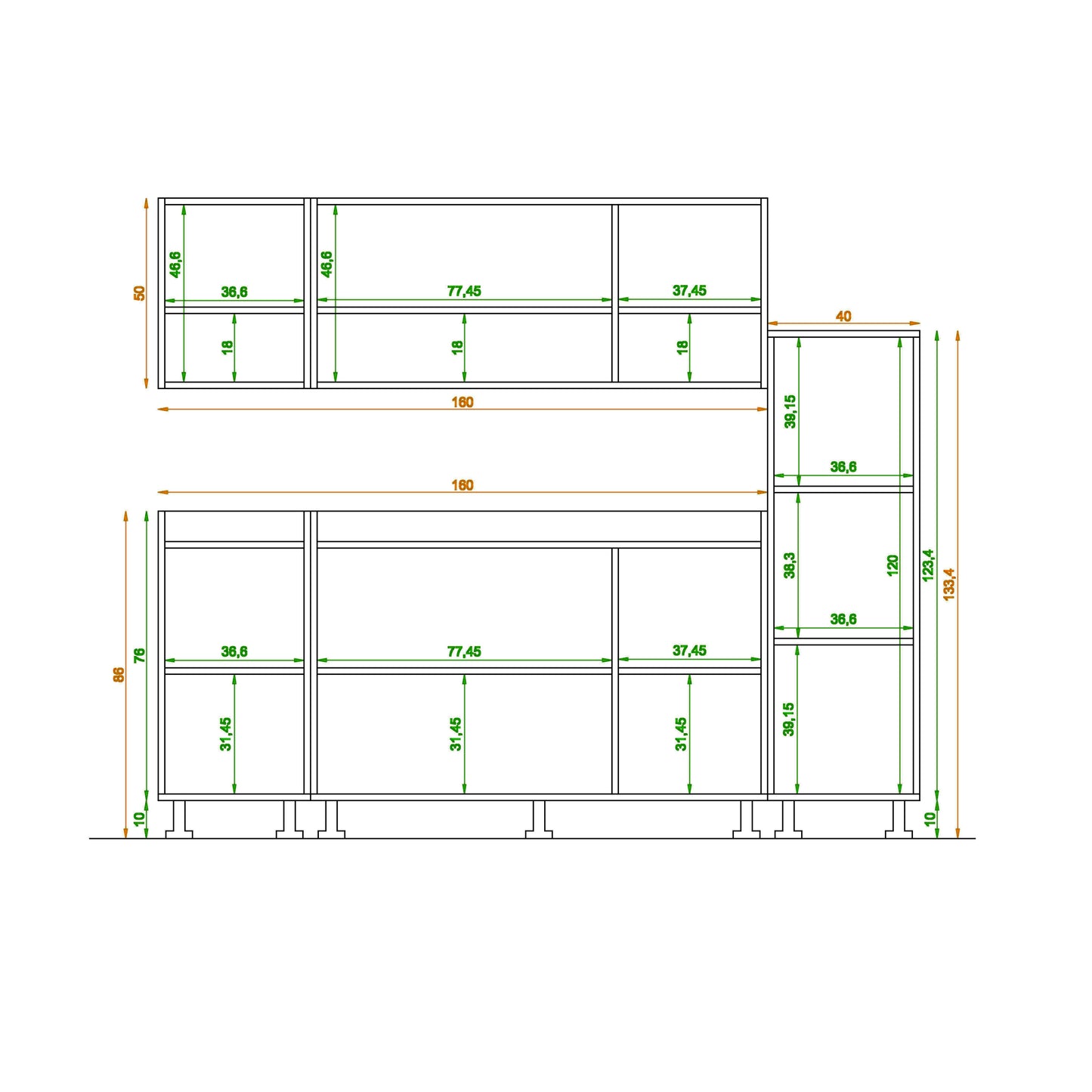 - مقاس الوحدة العلوية: العرض 160سم- العمق 30سم- الإرتفاع 50سم