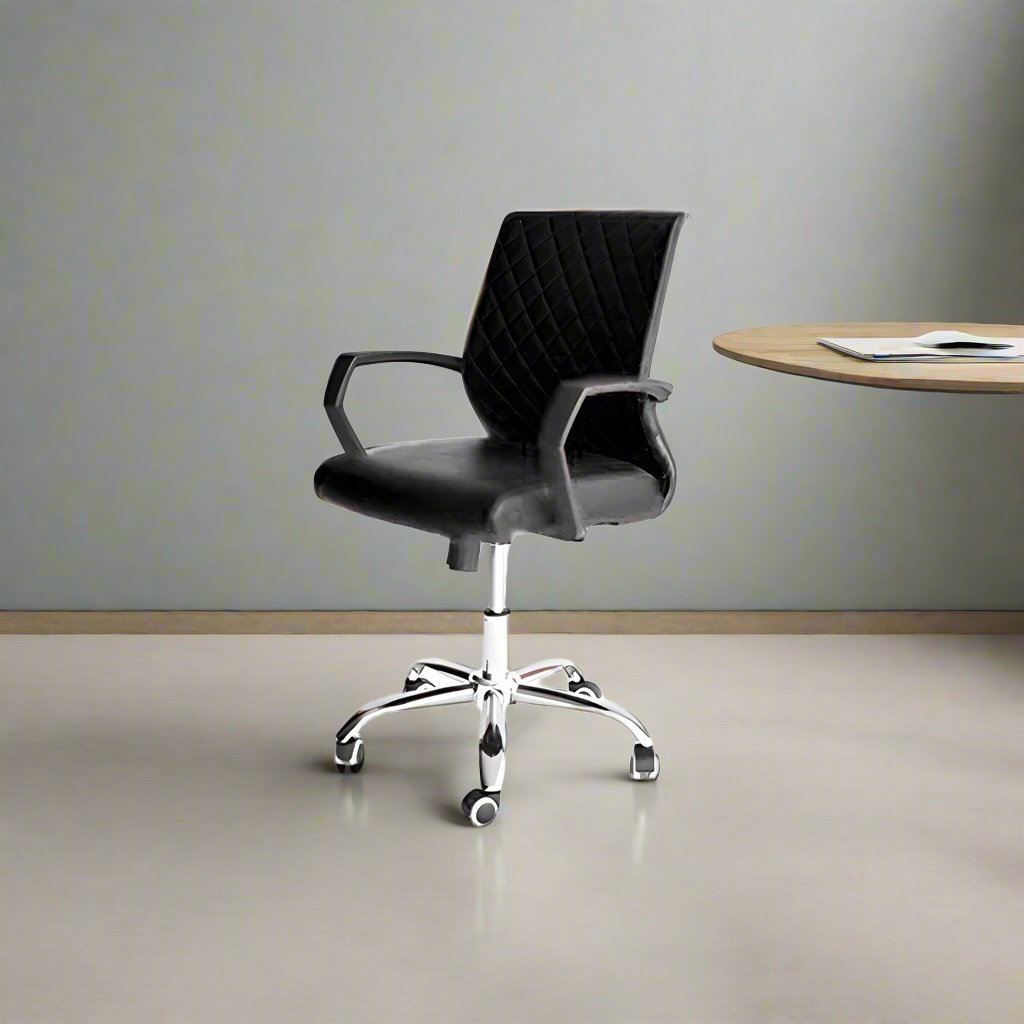 كرسي من الجلد يجمع بين الراحة الذى تحتاج اليها وبين المظهر الانيق قابل للدوران ومزود بمكاينزم لرفع وخفض الكرسي ليمكنك من الجلوس بشكل مريح، تصميم الكرسى وخاماته تجعله يتحمل سنوات من الاستخدام المستمر
