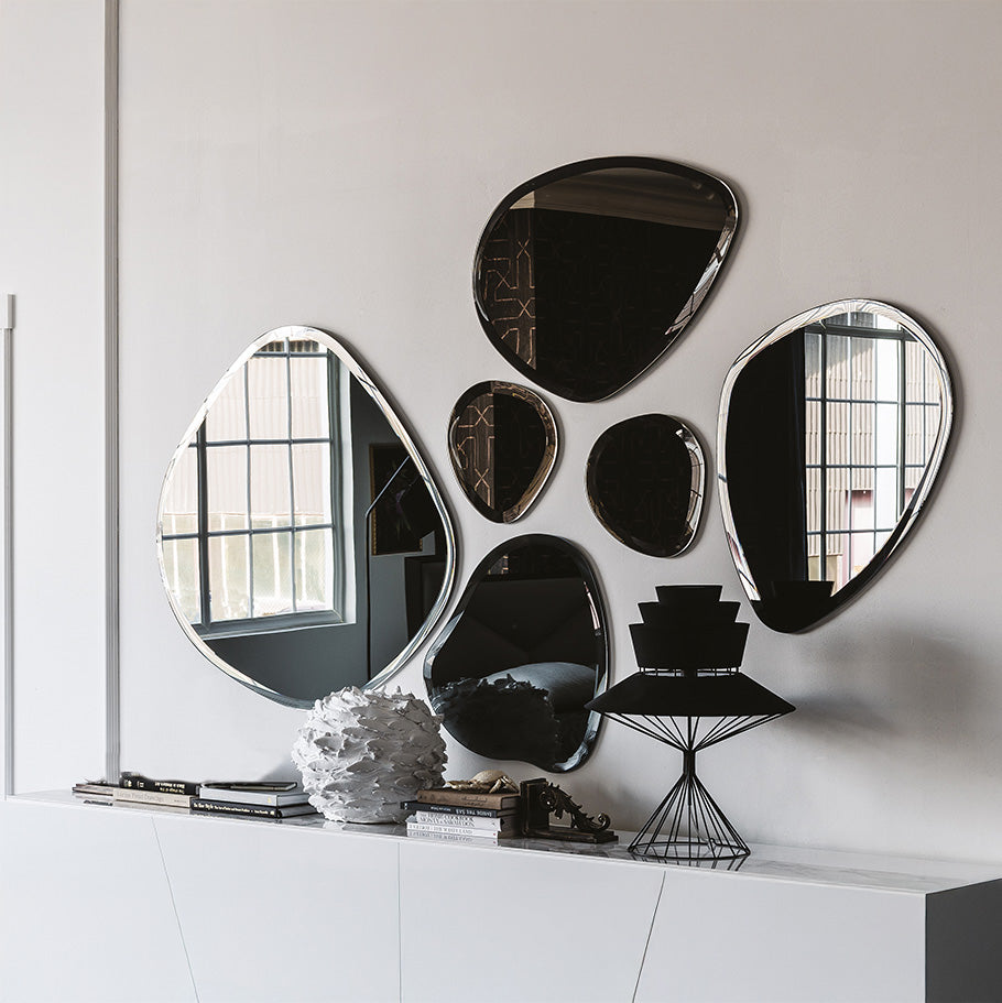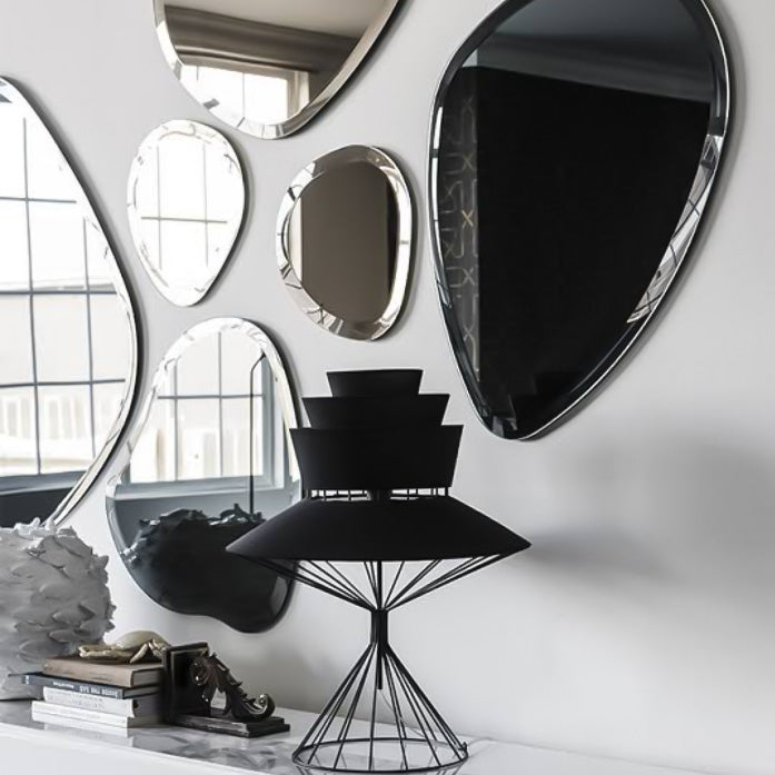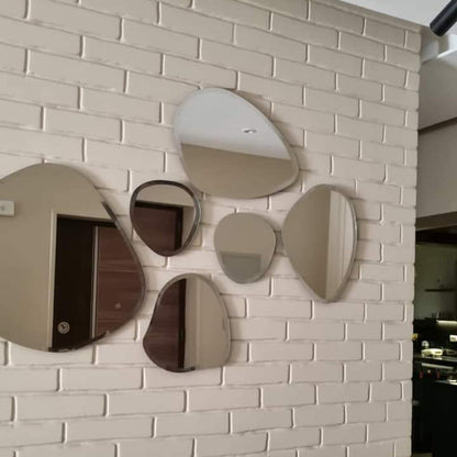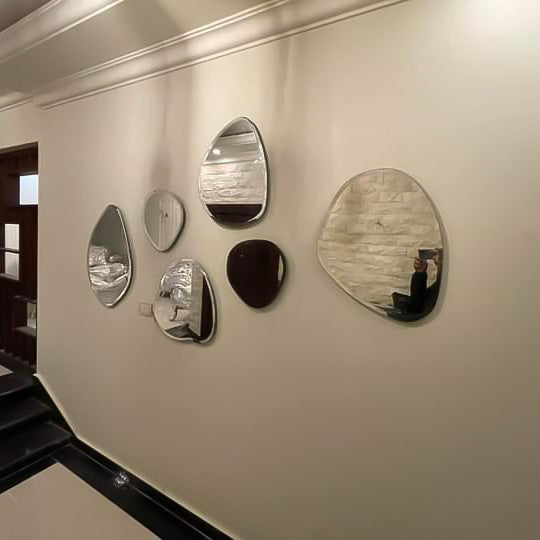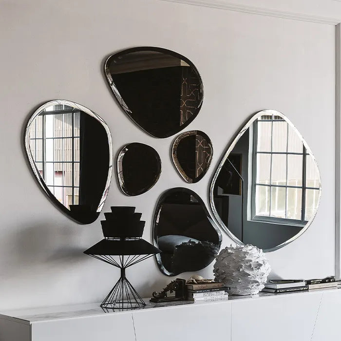 طقم مرايا بتصميم فريد يضيف لمسة من الأناقة والتألق إلى أي مساحة. تناغم الأحجام والتفاصيل المتقنة يعكس جمال الإبداع، ليصبح قطعة ديكور تلفت الأنظار وتضفي لمسة ساحرة على الجدران.