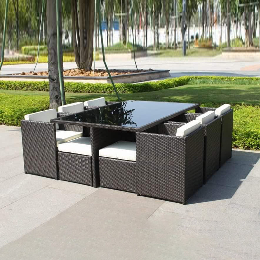 إذا كنت تبحث عن الإسترخاء، فإليك هذا الطقم الخارجي الرائع المكون من ترابيزة مع 6 كراسي و2 بوف، ضعه حيثما تشاء سواء داخل المنزل أو في حديقة منزلك فهو مقاوم للعوامل الجوية والشمس