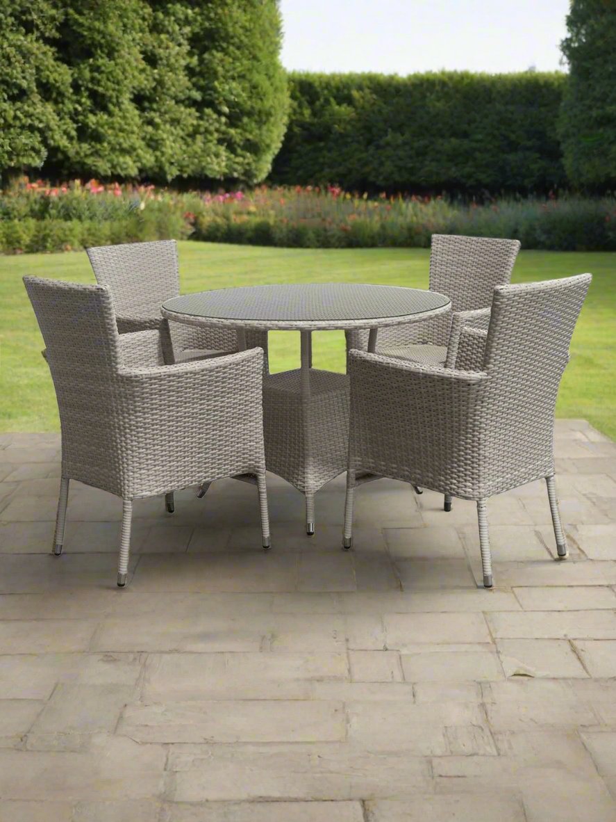 اختر طقم مكون من 4 كرسي وترابيزة إذا كنت تبحث عن الاسترخاء وخلق جو خاص بك في المنزل، فإليك هذا الطقم الرائع، ضعه في حديقة منزلك فهو مقاومة للعوامل الجوية والشمس