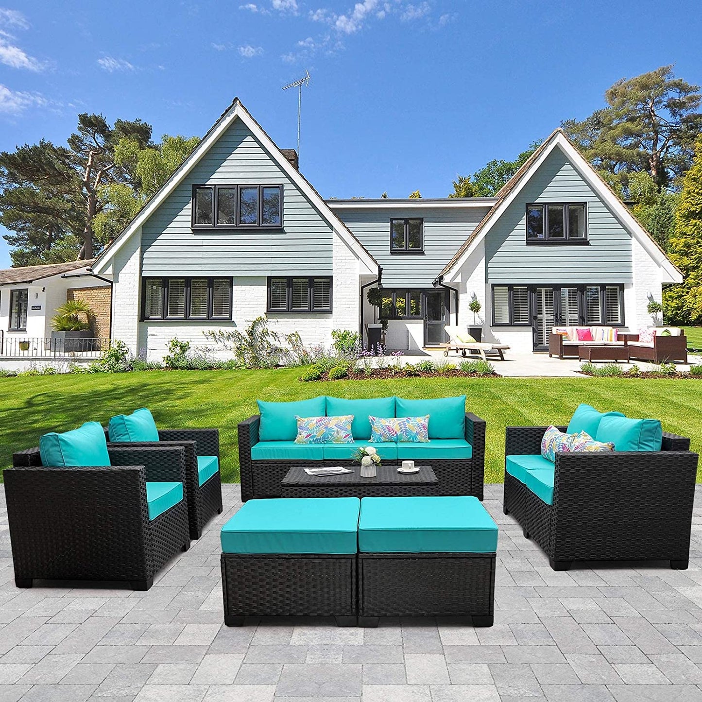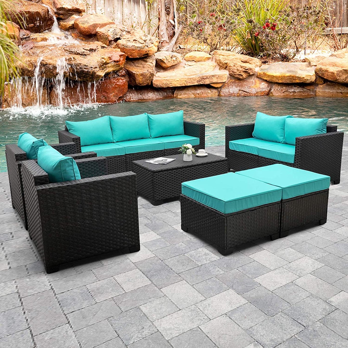 اقتن طقم أثاث خارجي مصنوع من راتان بيور والاسفنج المريح، يضيف مظهر أنيق إلى بالكون غرفتك أو حديقة منزلك فهو مقاوم للعوامل الجوية والشمس.