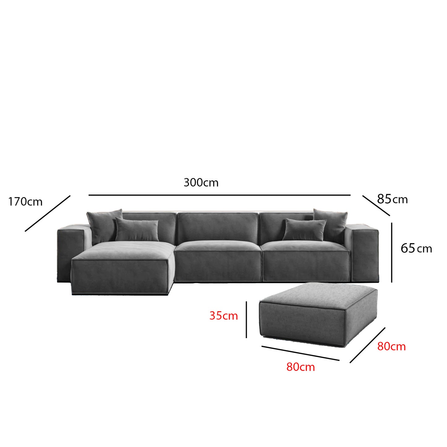 - مقاس الركنة: الطول 300سم - العرض 170سم - العمق 85سم - الإرتفاع 65سم