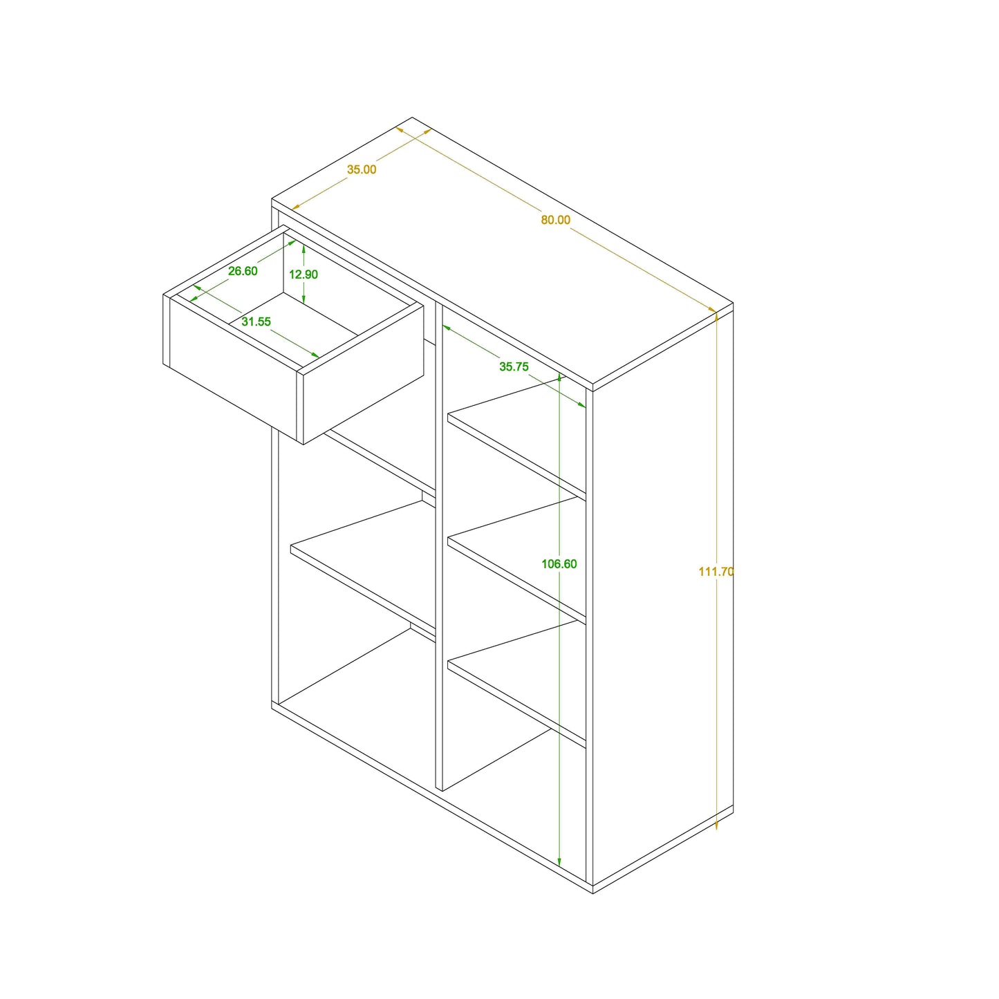 - المقاسات: العرض 80سم- العمق 35سم- الإرتفاع 112سم