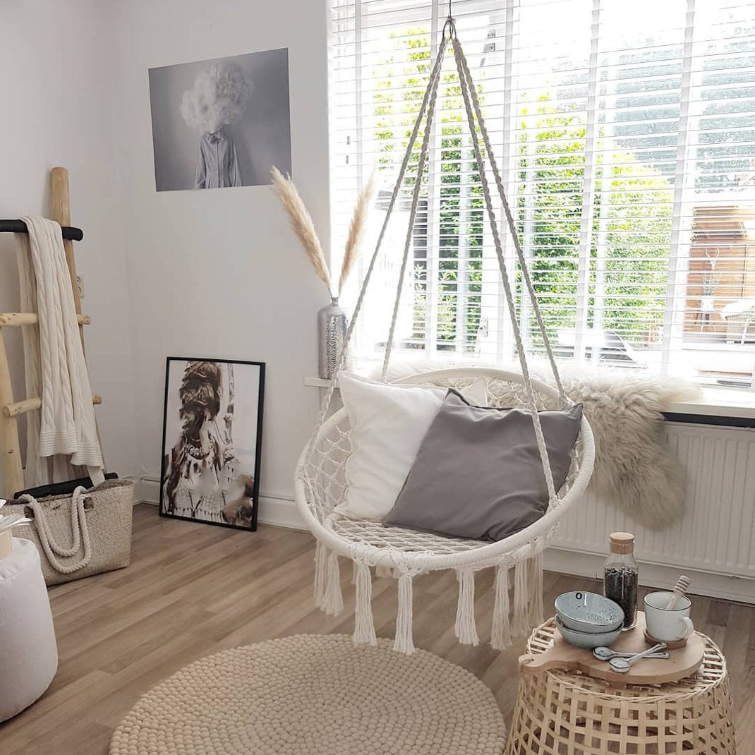 استمتع بالاسترخاء مع الأرجوحة المكرمية التي تضفي لمسة من الأناقة على منزلك. سواء كنت تقرأ كتابًا، أو تستمتع بمشروبك المفضل، أو فقط تتأمل في جمالها، ستجد أن هذه الأرجوحة تضيف لمسة ساحرة إلى حياتك اليومية.